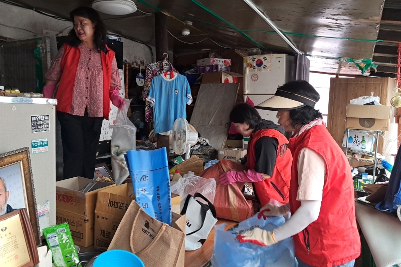 무주장애인종합복지관의 추천을 받아 청소를 진행한 가정은 무주군 설천면 이남마을에 위치한 곳으로 오랜 기간 누적된 생활 쓰레기와 폐가전 등으로 주거환경이 매우 열악한 상태였다.