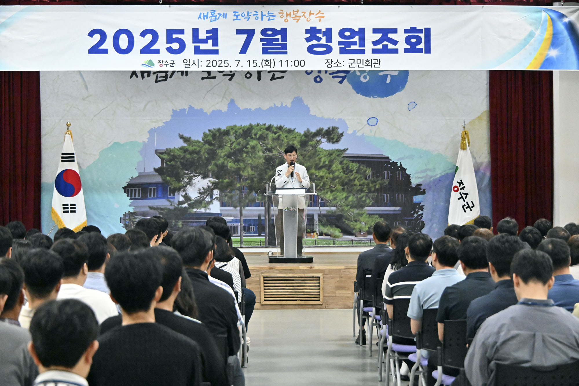 [장수=뉴전북]장수군은 민선 8기 3주년을 맞아 15일 군민회관에서 전 직원 청원조회를 개최했다.