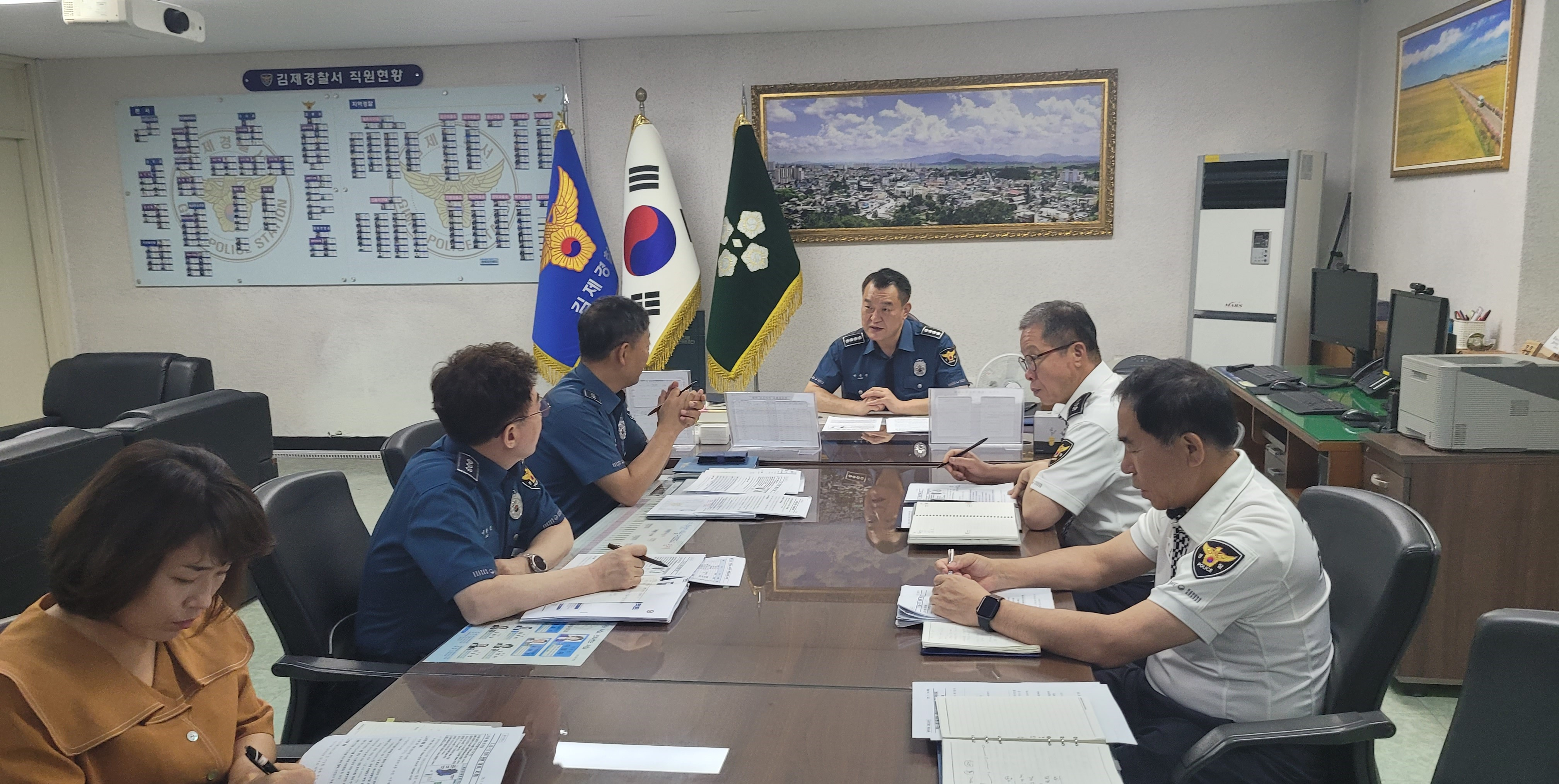 [김제=뉴전북] 김제경찰서(서장 박승준)는 2025. 7. 16.(수) 10:00 경찰서장실에서 집중호우 대비 대책회의 개최하였다.
