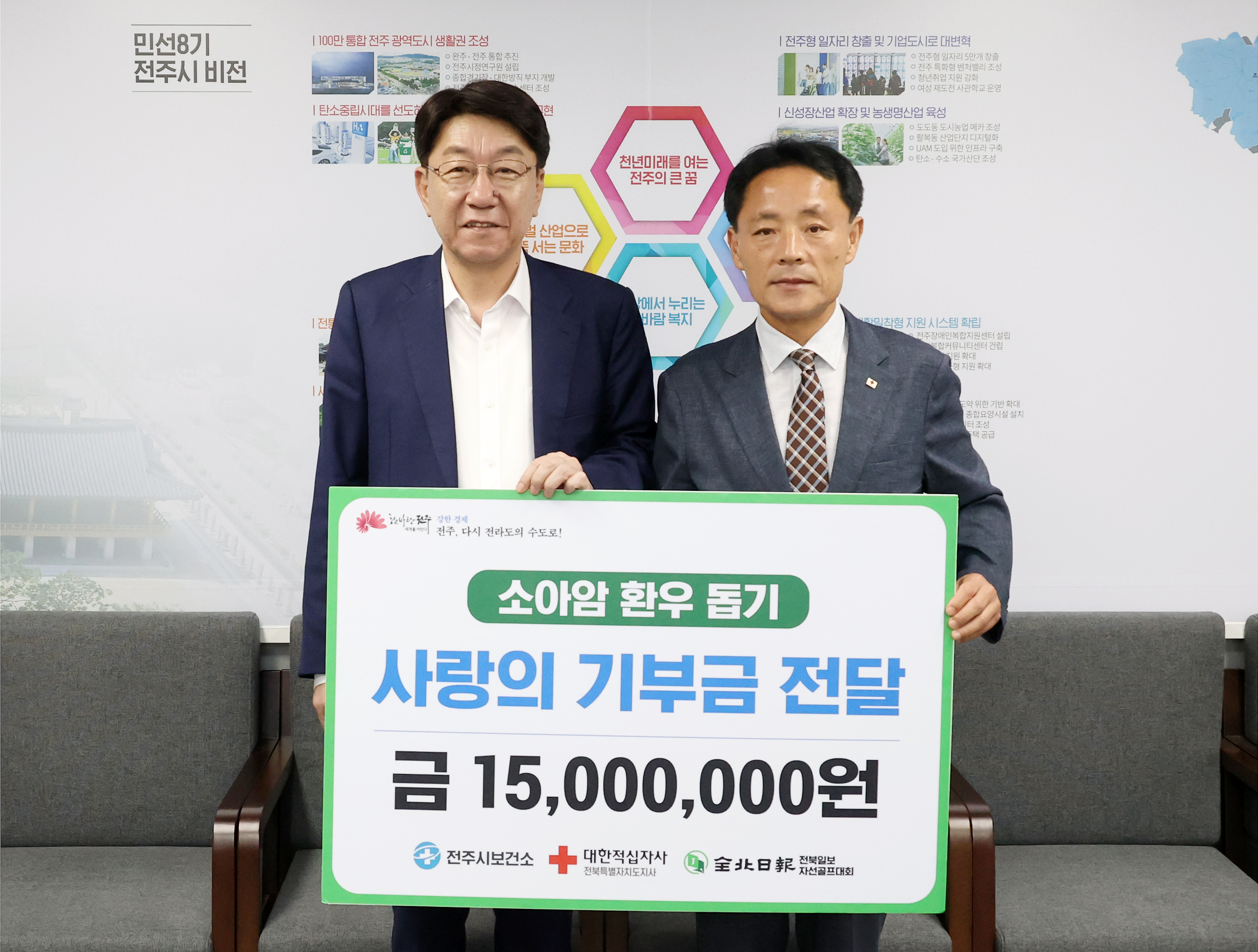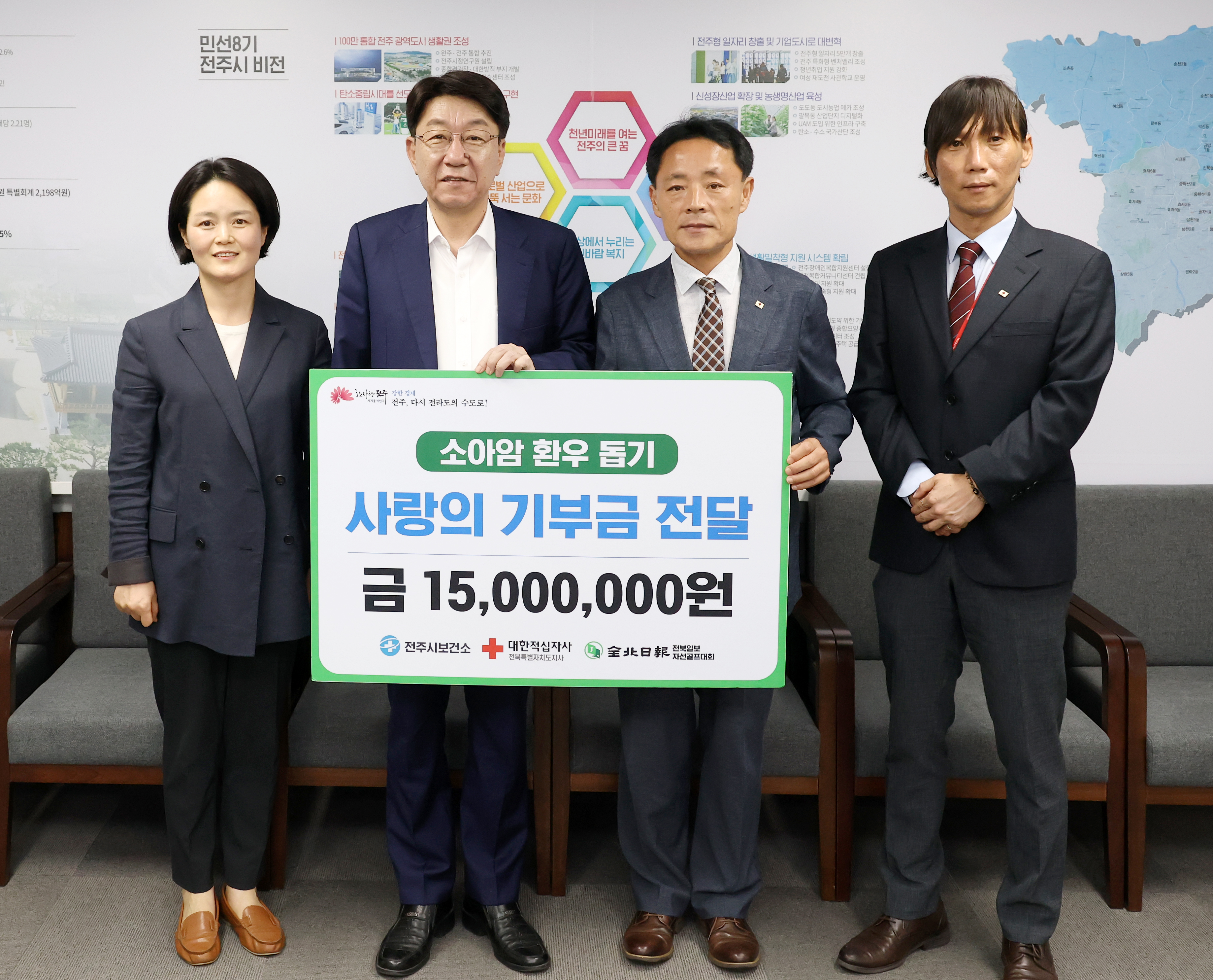 [전주=뉴전북] 대한적십자사 전북특별자치도지사(지사회장 이선홍)는 17일 전주시에 저소득층 소아암 환우를 돕기 위한 사랑의 기부금 1500만 원을 전달했다.