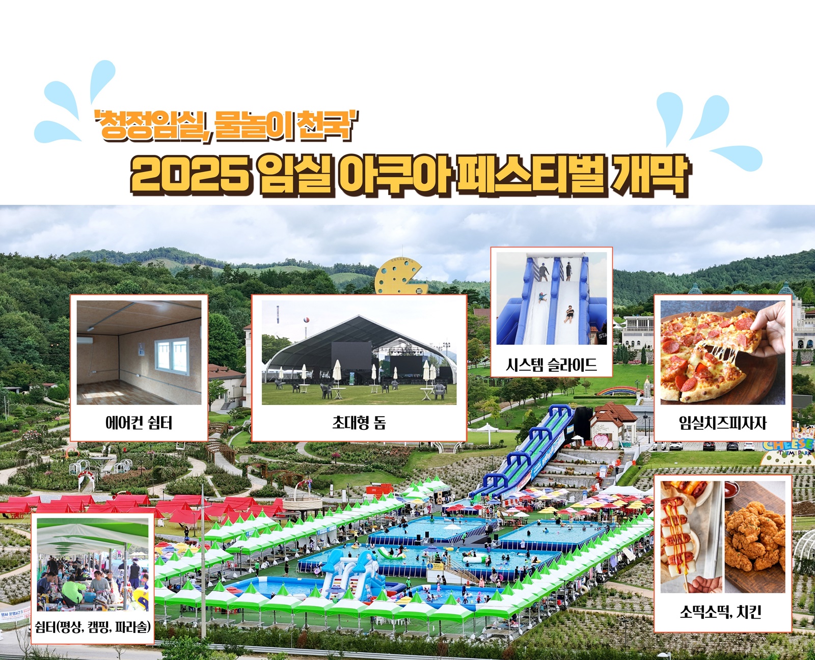- 초대형 워터슬라이드에 강력한 무더위 날릴 초대형 그늘막+에어컨 쉼터 새롭게 설치,임실치즈피자‧소떡소떡 등 먹거리 풍성, 개막 퍼포먼스에 DJ 파티, 케이팝도