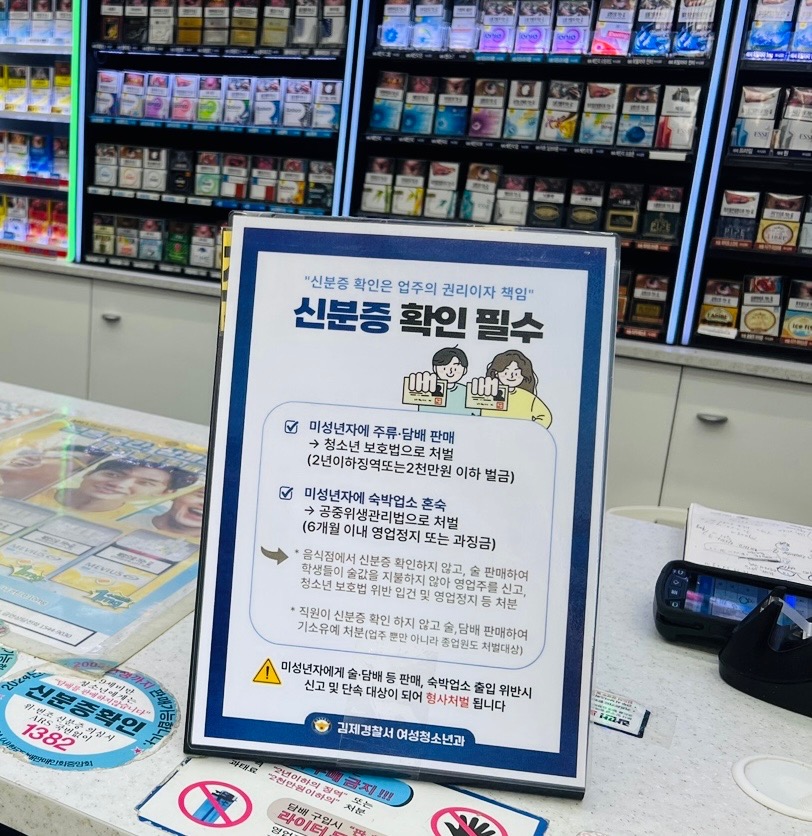 학교전담경찰관은 하계 방학 기간(7.14.~8.31.) 동안 청소년 대상 술·담배 판매를 근절하기 위한 신분증 확인 등의 내용을 넣어 직접 팜플렛을 제작해 관내 편의점, 마트 등을 방문하여 홍보 및 출입문과 계산대 등 고객과 점주 모두가 쉽게 볼 수 있는 장소에 부착하였다.