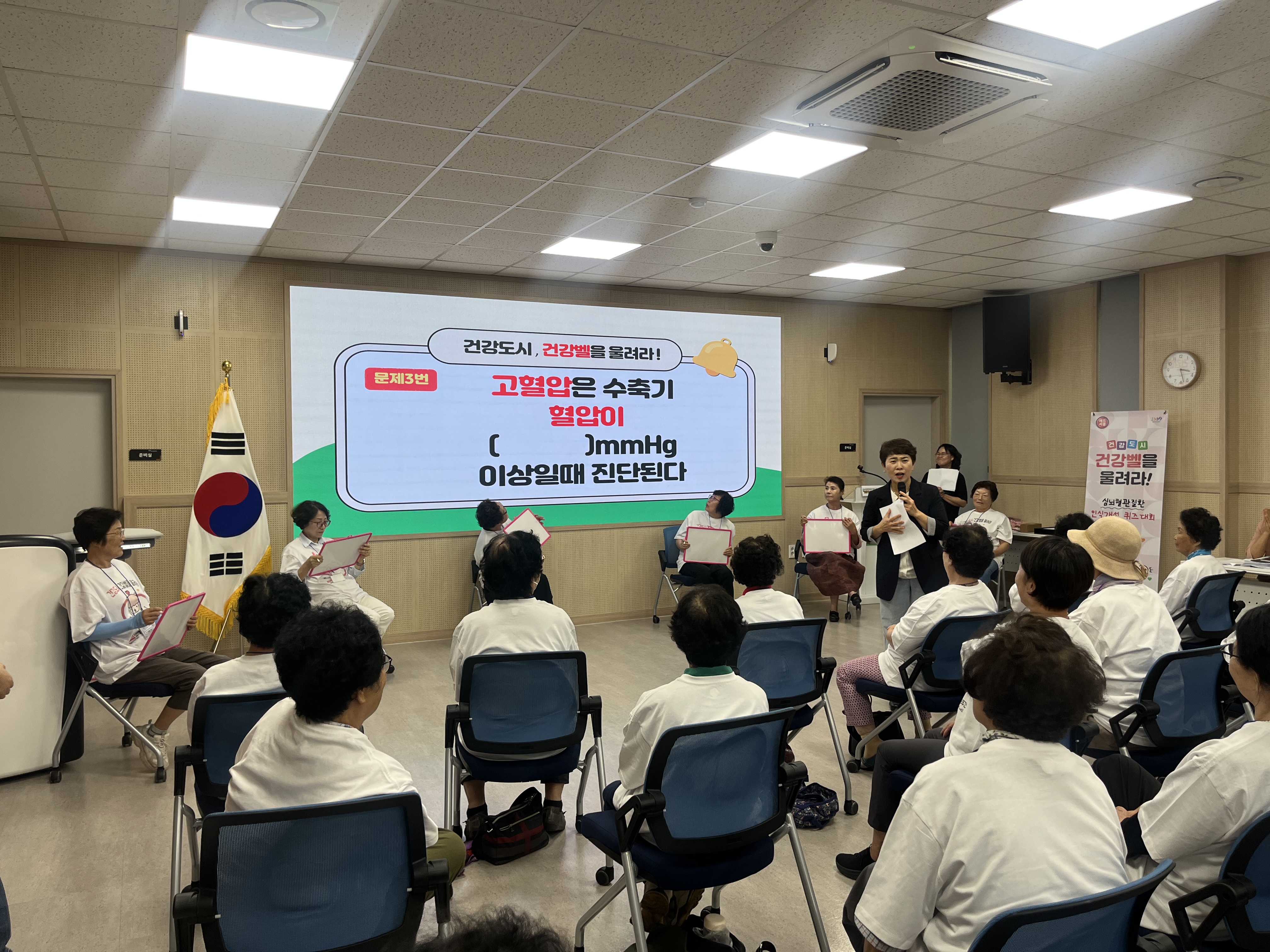 레크리에이션 강사의 진행으로 50여 명의 어르신들이 참여했으며 주입식 교육이 아닌 주민 참여형 퀴즈대회로 심뇌혈관질환에 대한 정보 제공을 통해 고혈압·당뇨병·이상지질혈증 등 심뇌혈관질환의 관리 및 합병증 예방을 위한 시간이 마련됐다.
