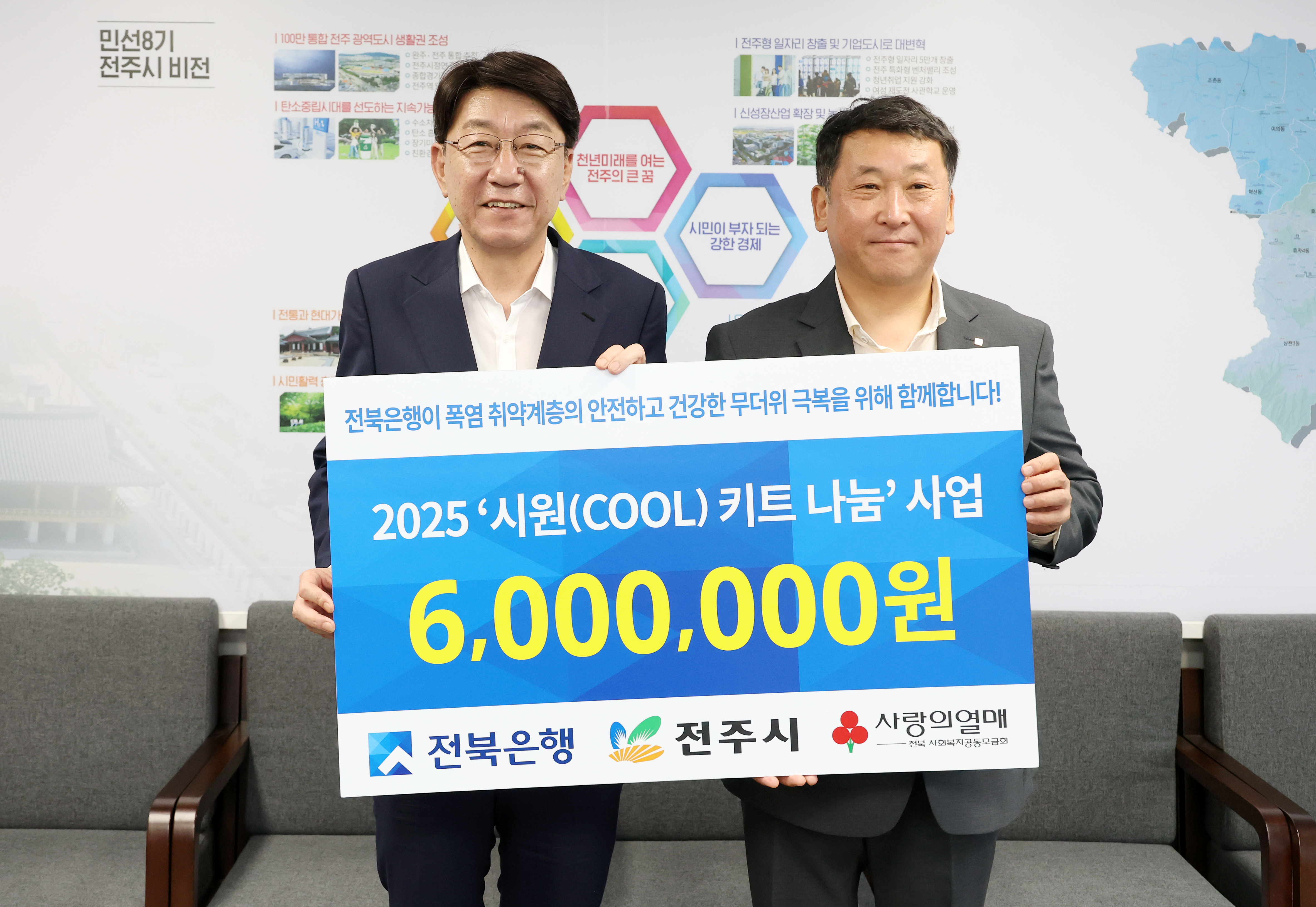 시는 최근 기상이변으로 인한 이른 무더위가 이어지는 가운데 전북은행의 이번 지원이 취약계층의 건강한 여름나기에 큰 도움이 될 것으로 기대하고 있다.