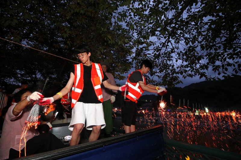 [무주=뉴전북] 무주 안성낙화놀이 공개 행사가 두문리낙화놀이보존회(회장 박일원)가 주최·주관한 가운데 지난 21일 안성면 장기리 구랑천변에서 개최됐다.