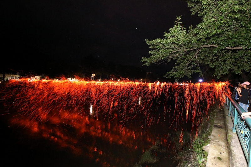 한편, 물 위에서 즐기는 전통 불꽃놀이인 낙화(落花)놀이는 떨어지는 불꽃이 마치 꽃과 같다고 해서 붙여진 이름으로, 한지에 쑥과 숯, 소금을 넣어 만든 낙화봉을 긴 줄에 매달아 불을 붙이면 그 줄을 타고 이어지는 불꽃이 장관이다.