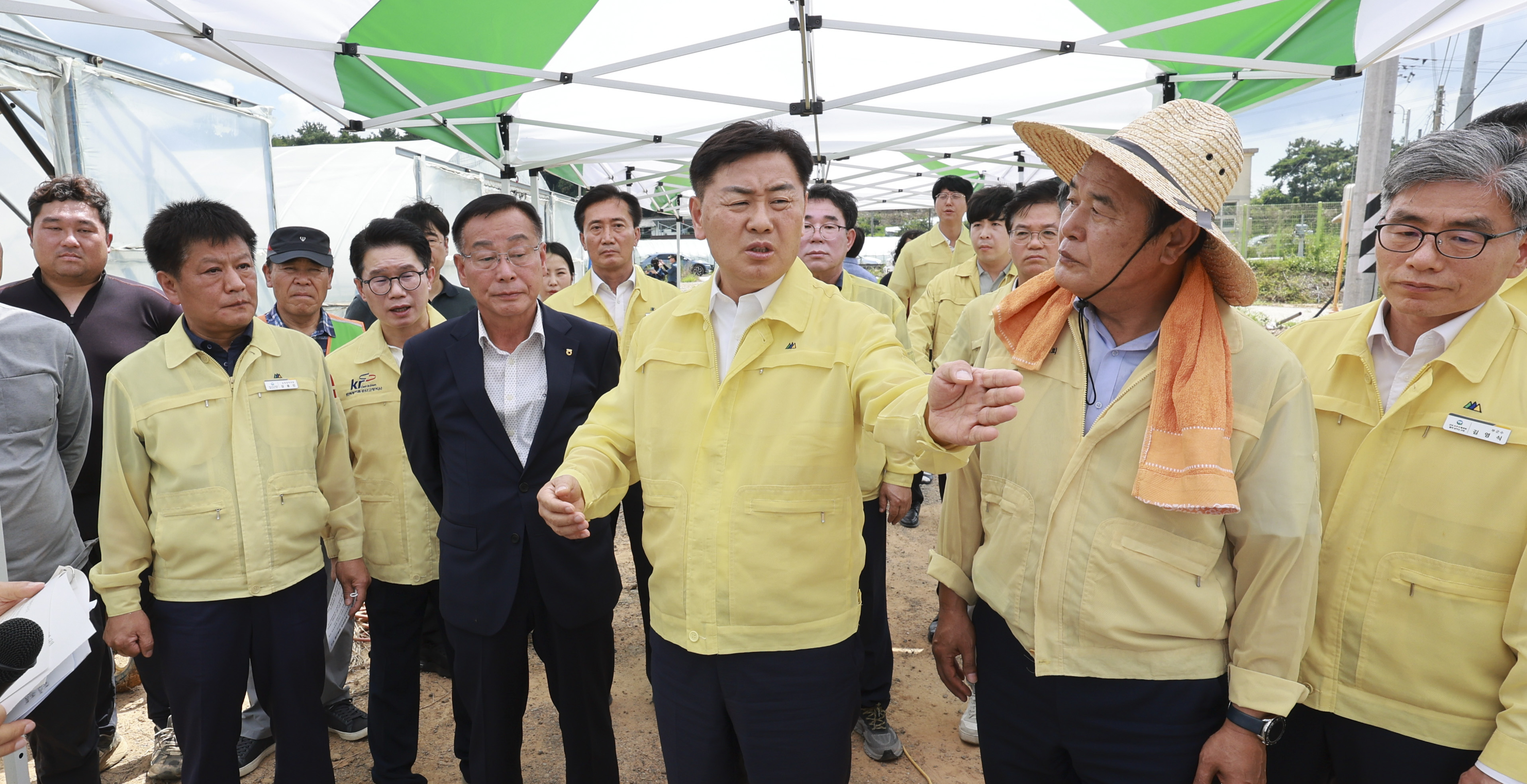 이번 현장 방문은 김관영 전북특별자치도지사를 비롯한 도 및 고창군 관계자들이 참석한 가운데 진행되었으며, 지방하천 범람으로 수박 하우스 8동(7,131㎡) 침수 피해가 발생한 현장을 찾아 자율방재단 및 경찰 인력 등 복구인력들의 활동상황을 점검하고, 피해농가와 직접 소통하며 애로사항을 청취하였다.