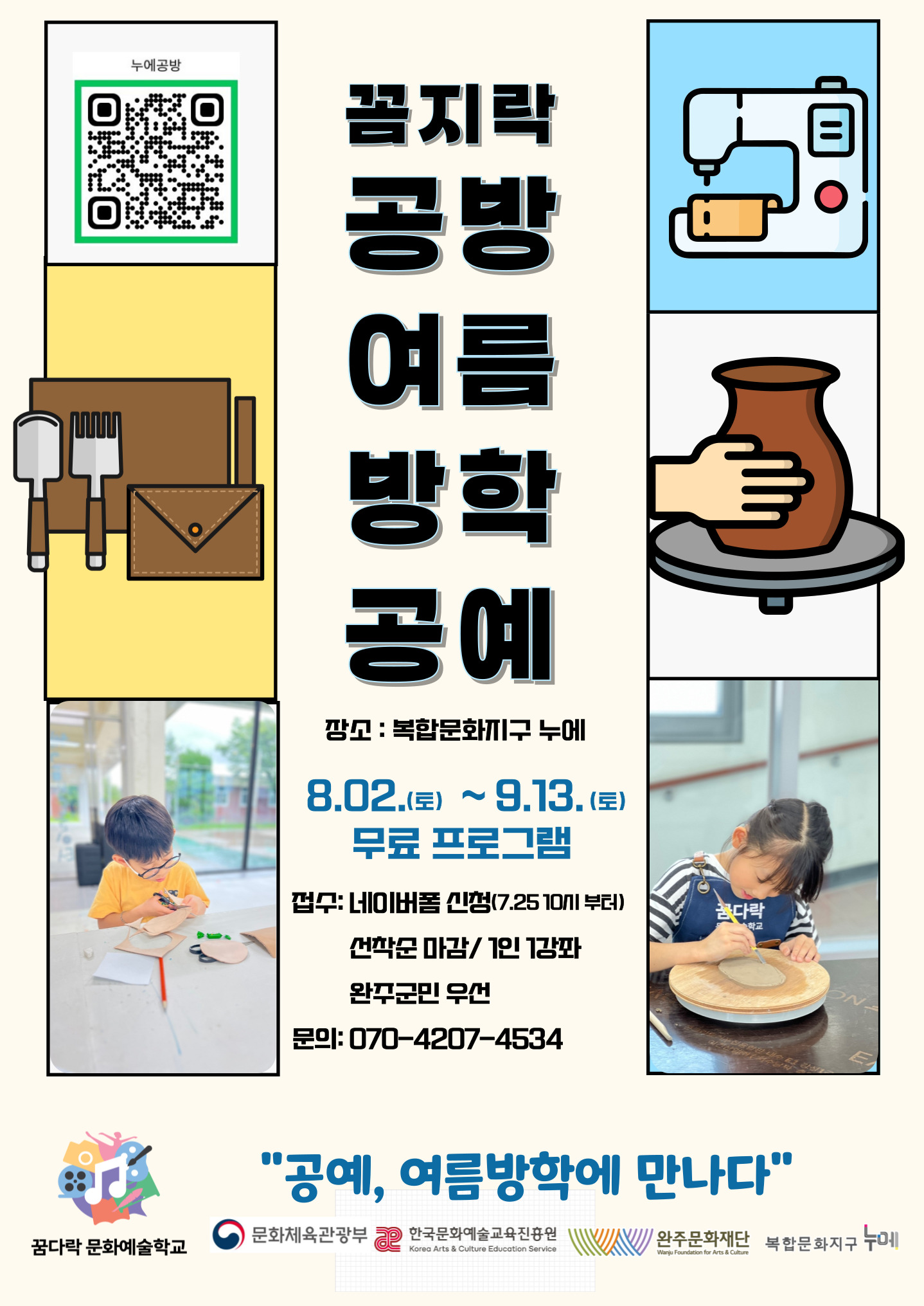 완주문화재단 유희태 이사장은 “여름방학을 맞아 공예를 처음 접하는 이들이 손끝으로 창작의 재미를 느낄 수 있도록 실습 위주로 프로그램을 구성했다”며 “꼼지락공방이 완주 군민에게 열려 있는 일상형 공예 공간으로 자리잡길 기대한다.”고 전했다.