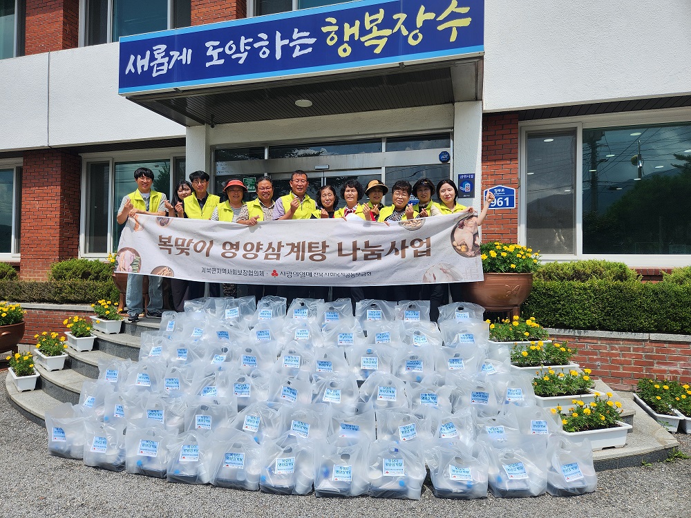 [장수=뉴전북] 장수군 계북면 지역사회보장협의체(공공위원장 이종현, 민간위원장 김재수)는 지난 23일 복날을 맞아 어르신 및 취약계층 60가구에 영양삼계탕을 전달하는 나눔 행사를 실시했다.