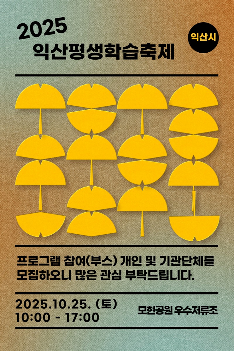 [문화=뉴전북] 익산시가 시민과 함께 배우고 나누는 '2025 익산평생학습축제'를 빛낼 체험홍보관 부스와 무대공연팀을 모집한다고 25일 밝혔다.