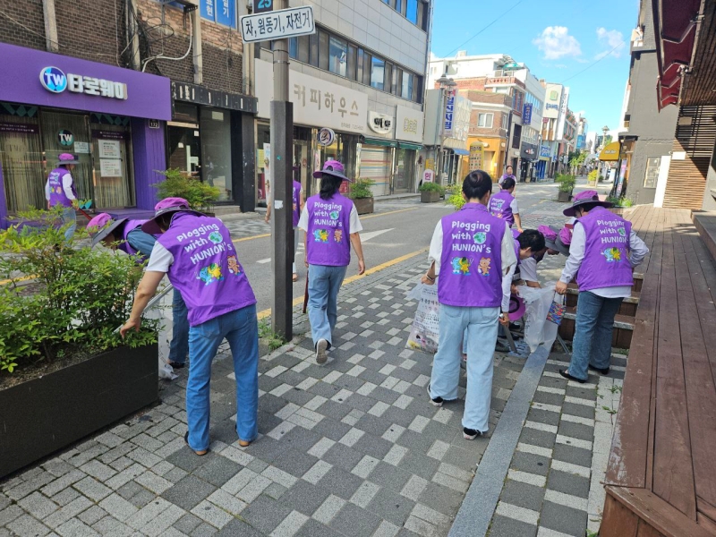 [사회=뉴전북] 낮 최고기온이 35도 안팎까지 올랐던 지난 27일 신천지예수교 도마지파(지파장 최중일·이하 신천지 도마지파) 교인 30여 명이 전주 한옥마을 인근에서 플로깅과 함께 여름맞이 네잎클로버 키링 나눔 캠페인을 진행했다.