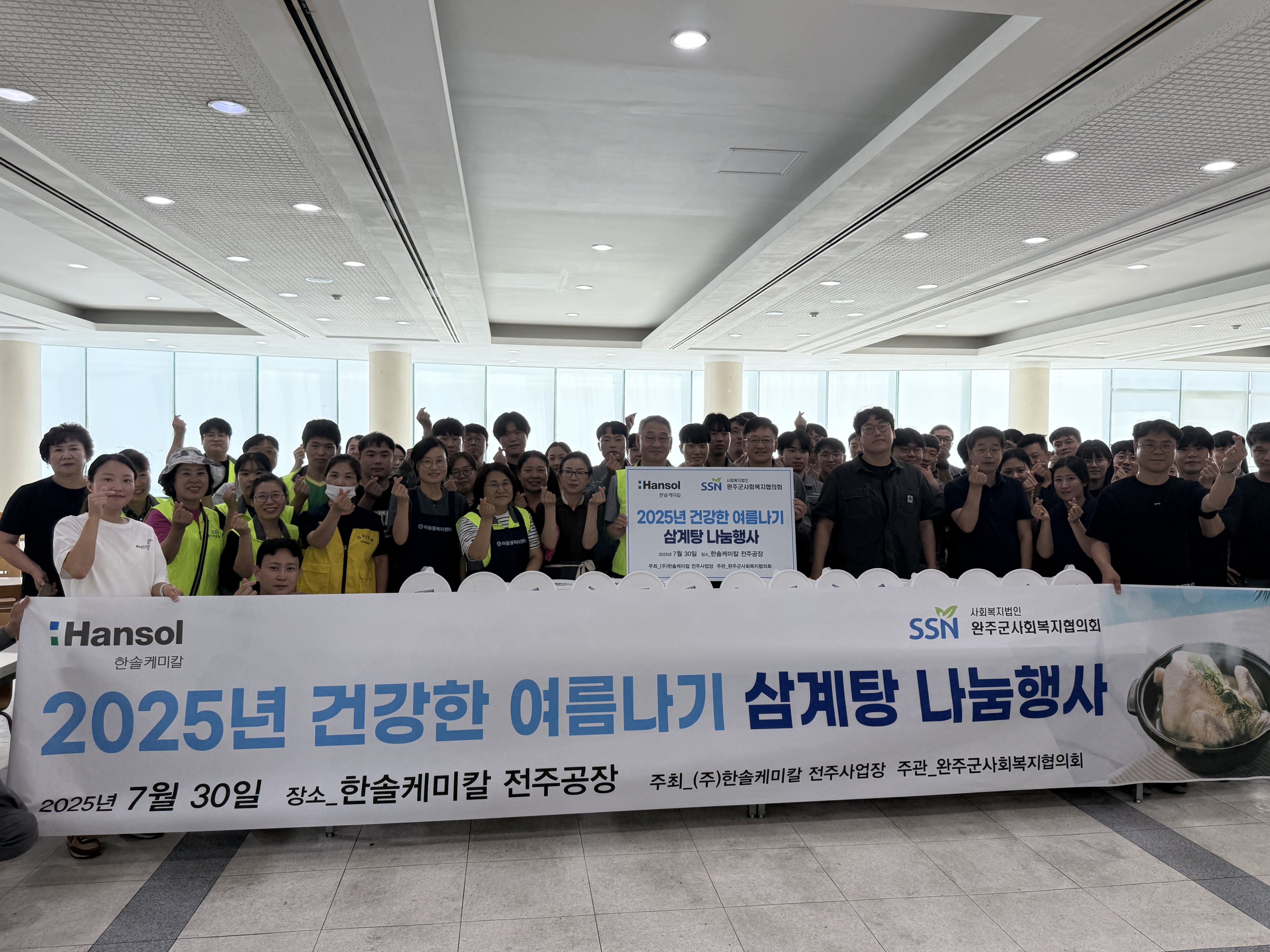 유영찬 한솔케미칼 전주공장장은 “여름철을 맞아 어려운 이웃들에게 삼계탕을 나누며, 기업의 사회적 책임을 실천하는 ESG 경영을 이어가고자 한다”고 밝혔다.