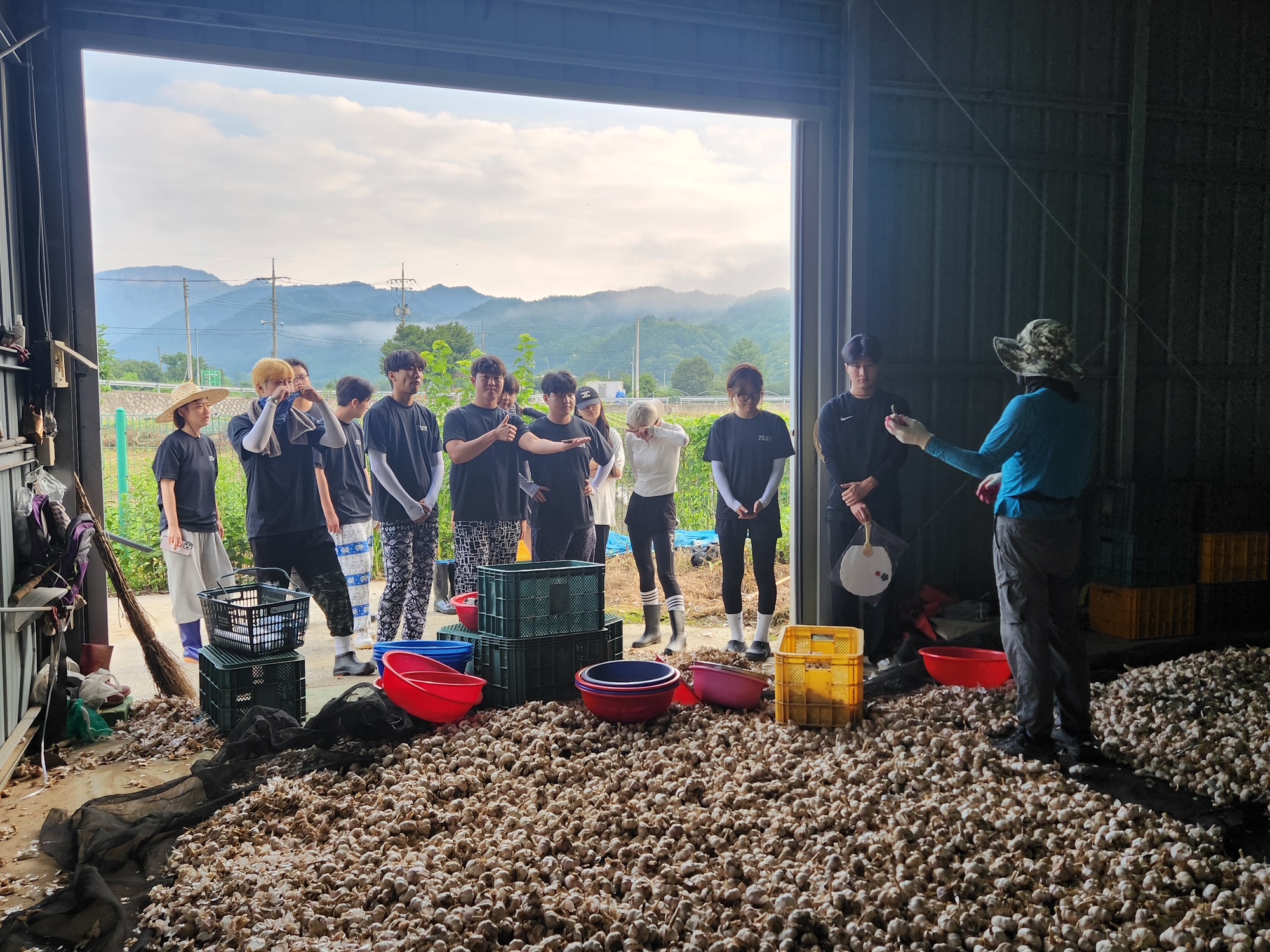 학생들은 5개 팀으로 나뉘어 경천면 지역 농가에서 콩 때우기, 들깨 모종 심기, 잡초 제거, 마늘 쪼개기 등 다양한 농작업을 지원하며 지역 주민들과 교감하는 시간을 가졌다.
