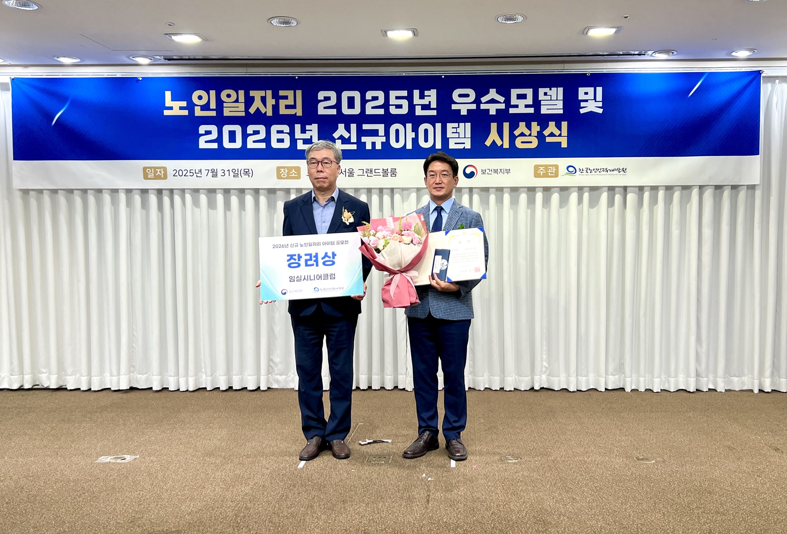 [임실=뉴전북] 전북 임실시니어클럽(관장 김윤호)이 보건복지부가 주최하고 한국노인인력개발원이 주관한 ‘2026년 신규 노인 일자리 개발을 위한 아이템 공모전’에서 한국노인인력개발원장상(장려상)을 수상했다고 4일 밝혔다.