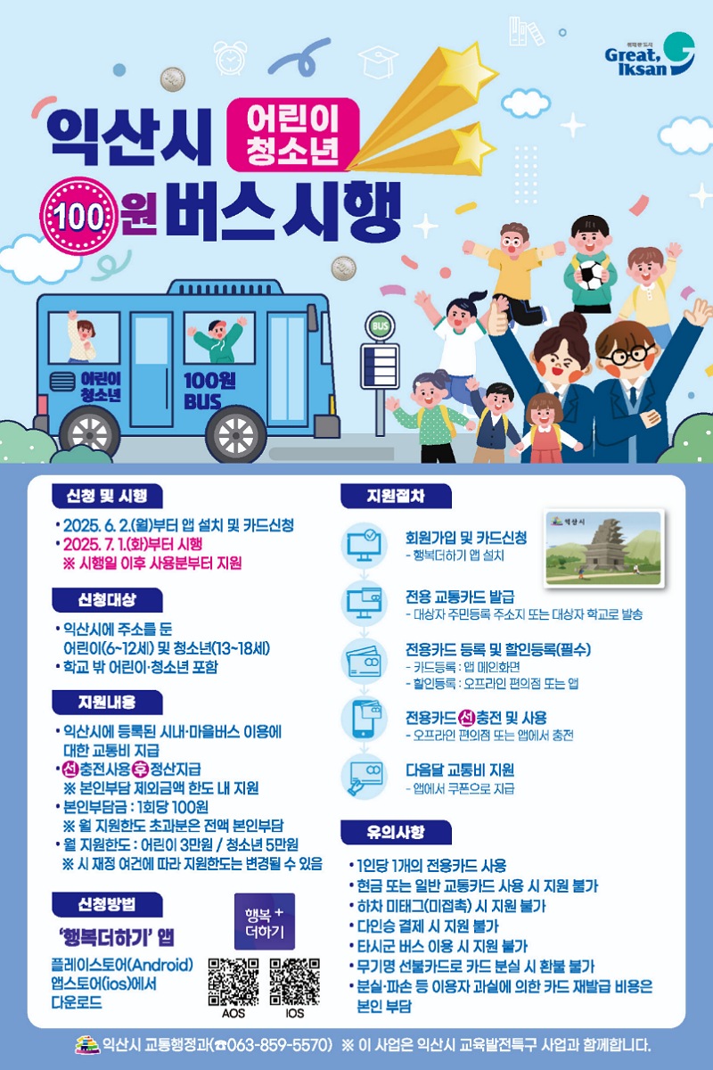 | 익산시 어린이·청소년 100원 버스 신청 1만 명 돌파(카드디자인) |