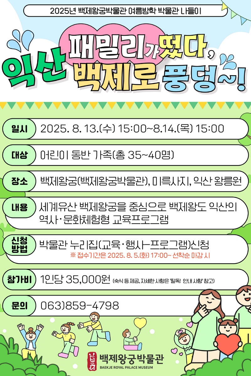 [문화=뉴전북] 익산시가 여름방학을 맞아 1박 2일 어린이 역사·문화 프로그램을 마련했다.