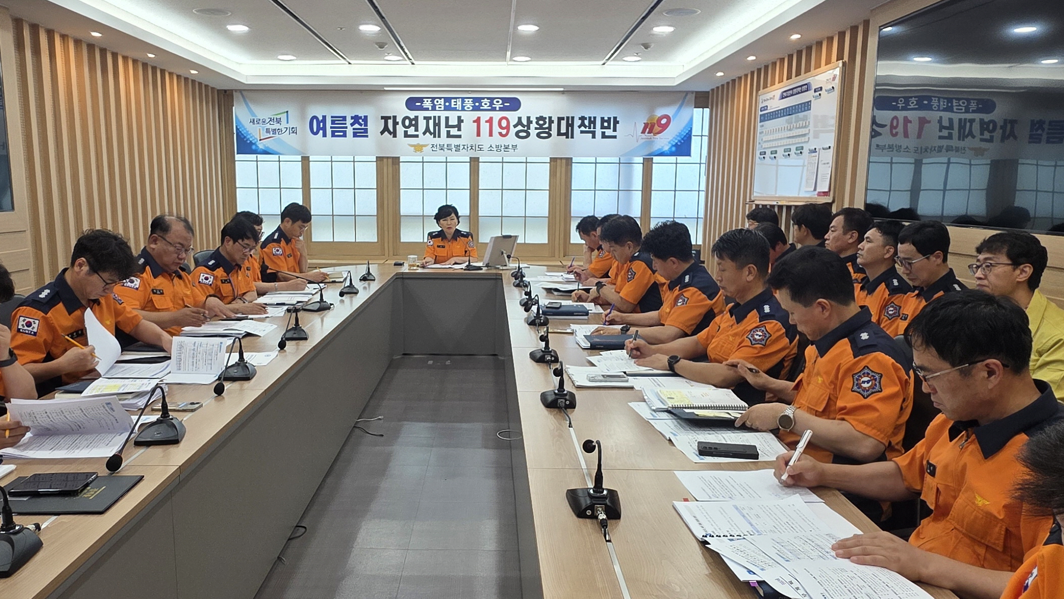 이런 가운데 지난 6일 오전 11시, 전북도청 17층 작전실에서 폭염 대응 관련 긴급 회의가 열렸다. 회의에서는 폭염환자 발생 시 신속 대응 방안을 비롯해 급수 및 살수 지원을 통한 취약계층 보호 대책, 도민 대상 교육‧홍보 강화 방안이 집중 논의됐다. 특히 폭염 대응 과정에서 현장대원들이 입을 수 있는 안전사고를 예방하고, 사고 발생 시에는 사후 관리까지 체계적으로 이뤄질 수 있도록 관리 대책도 함께 검토했다.