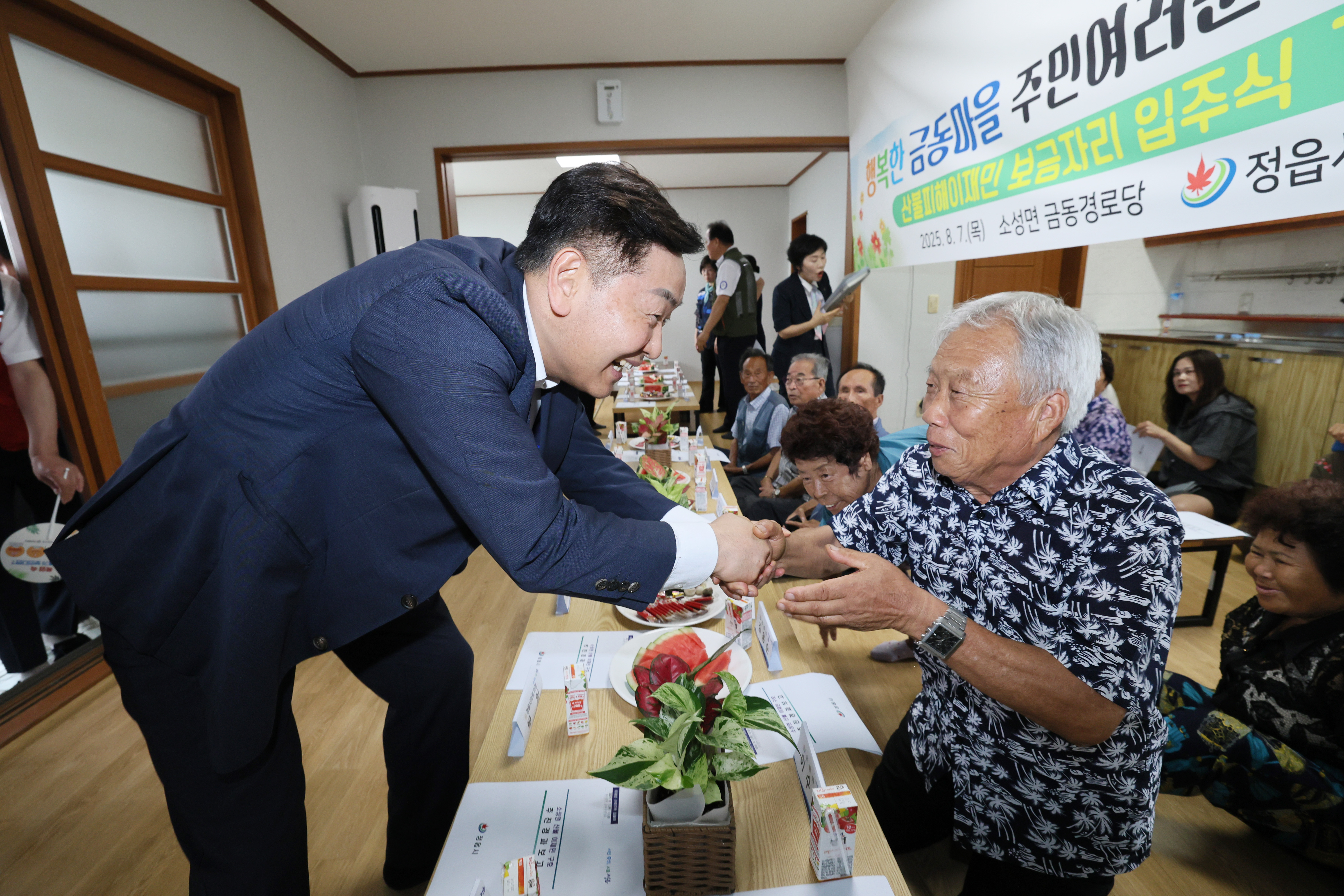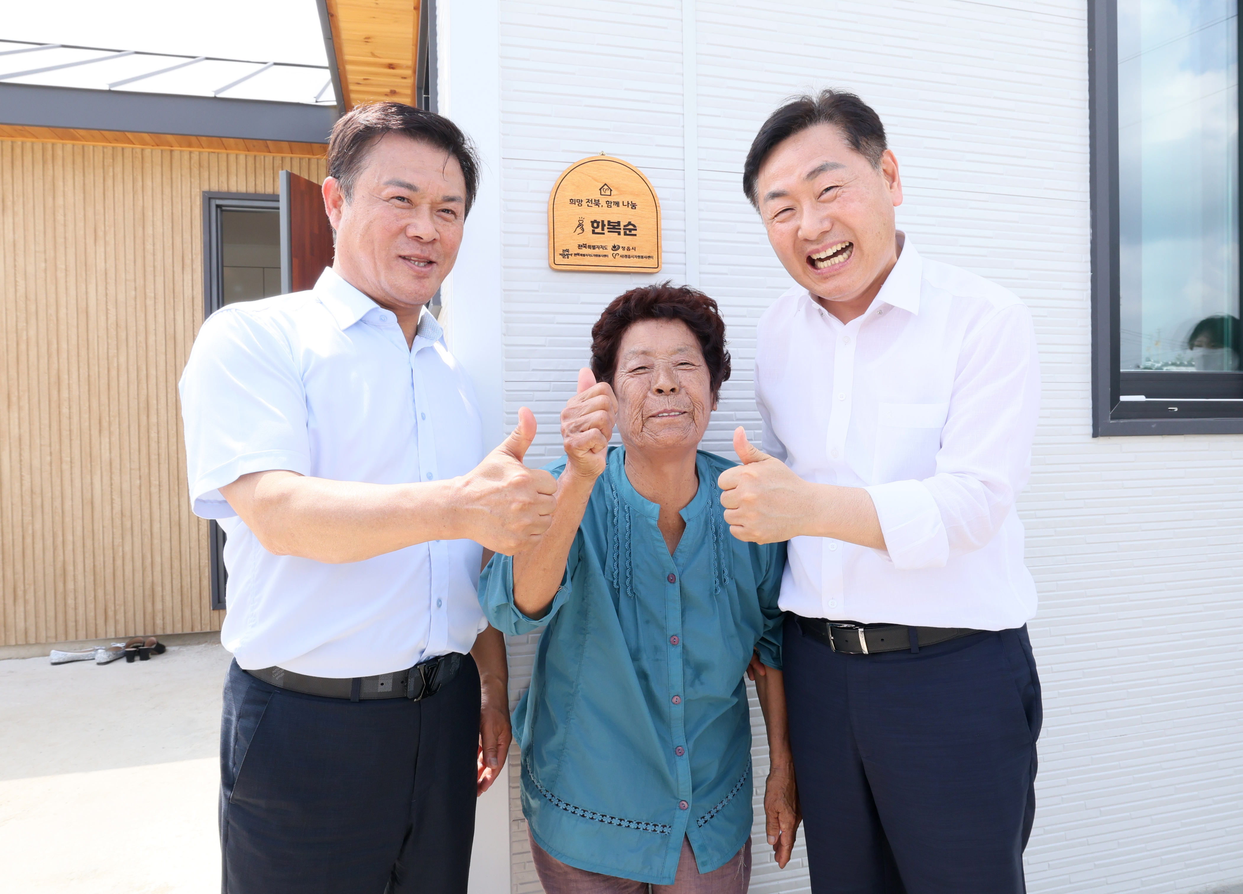 이번 행사는 지난 325일 정읍시 소성면에서 발생한 산불로 주택 13동이 피해를 입고 35명의 이재민이 발생한 가운데, 이 중 전소된 주택 3동의 복구가 완료됨에 따라 마련된 자리다.