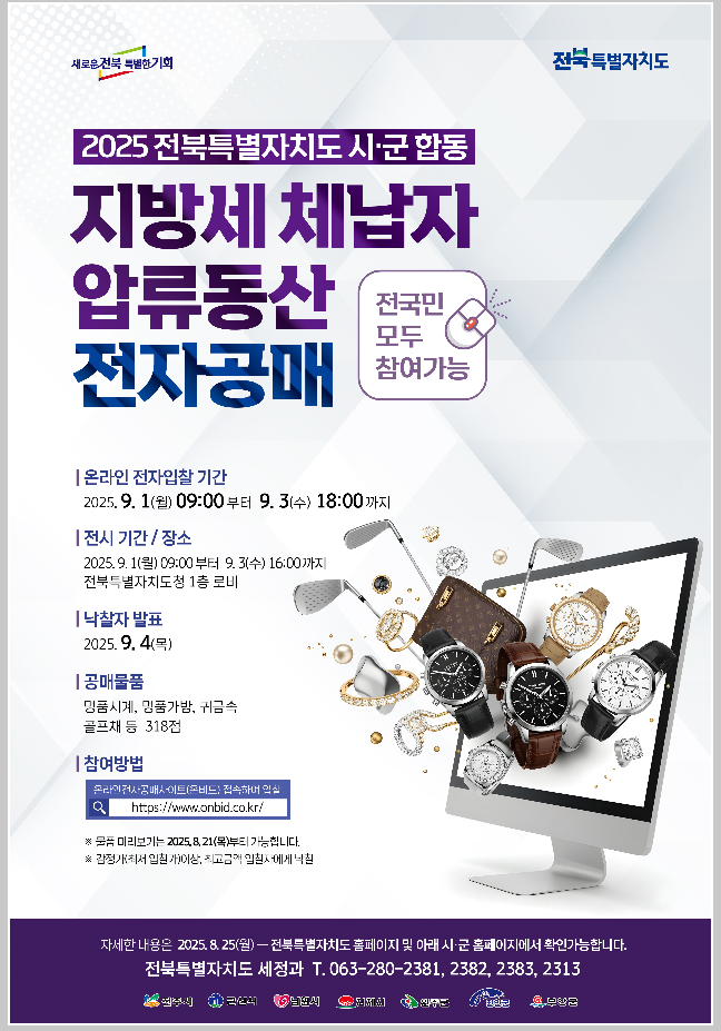 이번 공매는 전북특별자치도 주관으로 9월 1일부터 3일까지 3일간 전북도청 1층 로비에서 전시된다.