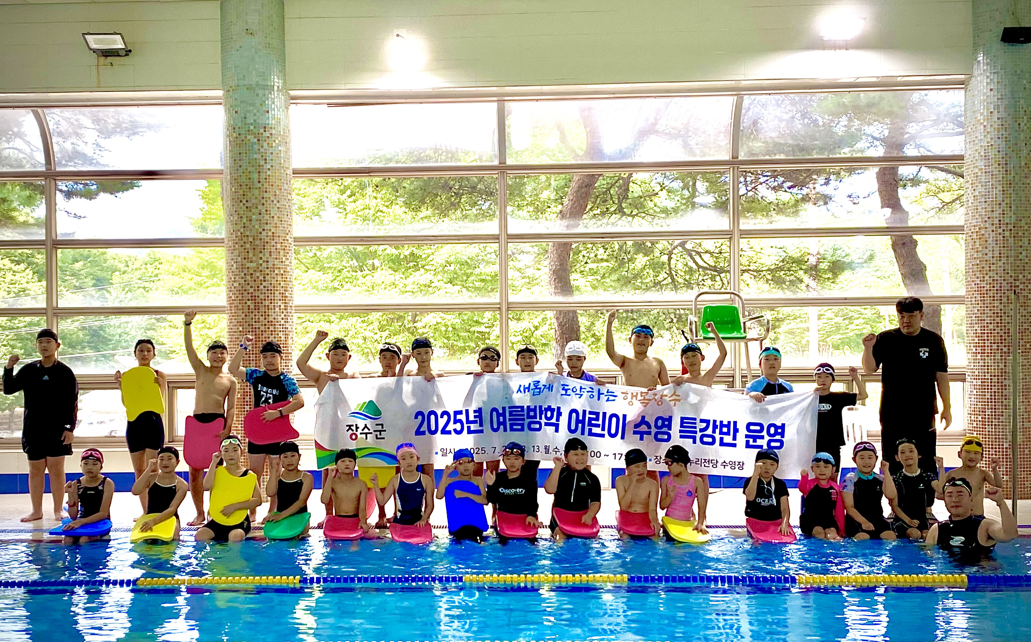 [장수=뉴전북] 장수군은 관내 초등학생을 대상으로 ‘여름방학 어린이 수영 특강반’을 성공적으로 운영해 건전한 방학 문화 조성과 어린이들의 체육활동 증진에 기여했다고 14일 밝혔다.