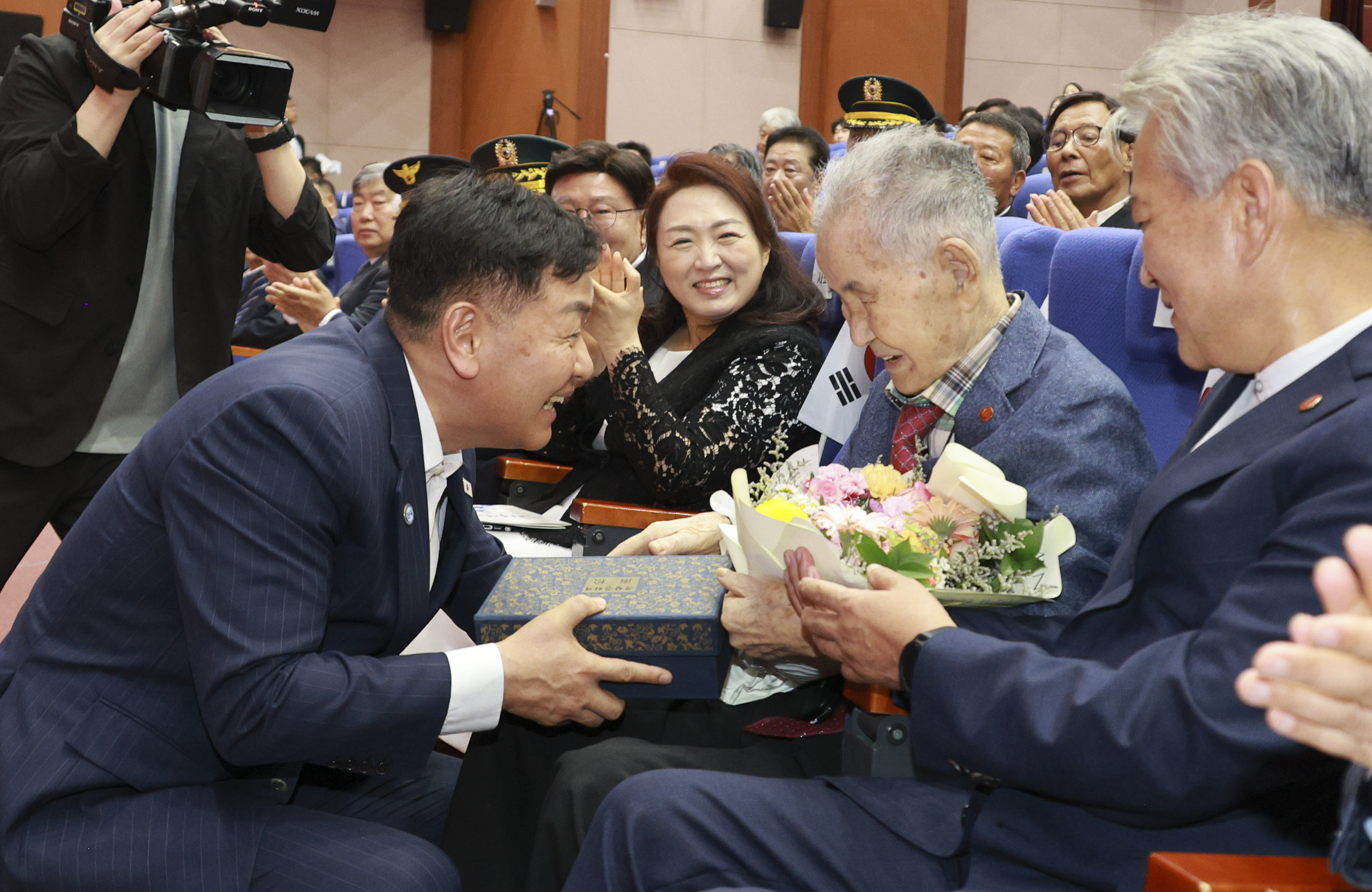 행사장에서는 호남지역 유일 생존 애국지사인 이석규(99세) 선생이 소개됐으며, 김관영 도지사는 무대 위에서 이석규 선생에게 꽃다발과 위로물품을 전달하며 건강과 안녕을 기원했다. 이석규 선생은 1943년 광주사범학교 재학 시절 독서회를 조직해 민족의식을 함양하고, 봉기를 준비하다 체포돼 옥고를 치른 독립운동가다. 그의 숭고한 헌신은 이날 행사에 참석한 모든 이들의 마음을 울렸다.