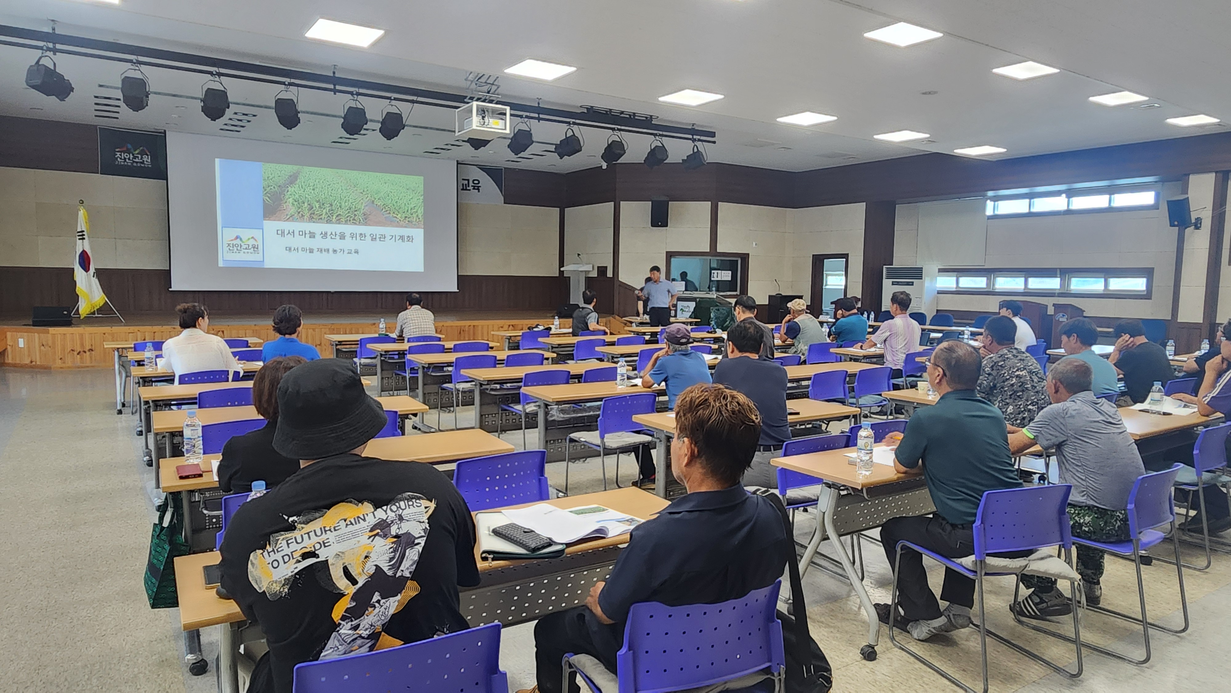 [진안=뉴전북] 진안군(군수 전춘성)은 지난 14일과 18일 진안군농업기술센터 강당에서 마늘재배 농업인 40여명을 대상으로 겨울철 소득작목 마늘 시범사업 추진요령과 고품질 마늘 생산을 위한 재배기술 교육을 실시했다.
