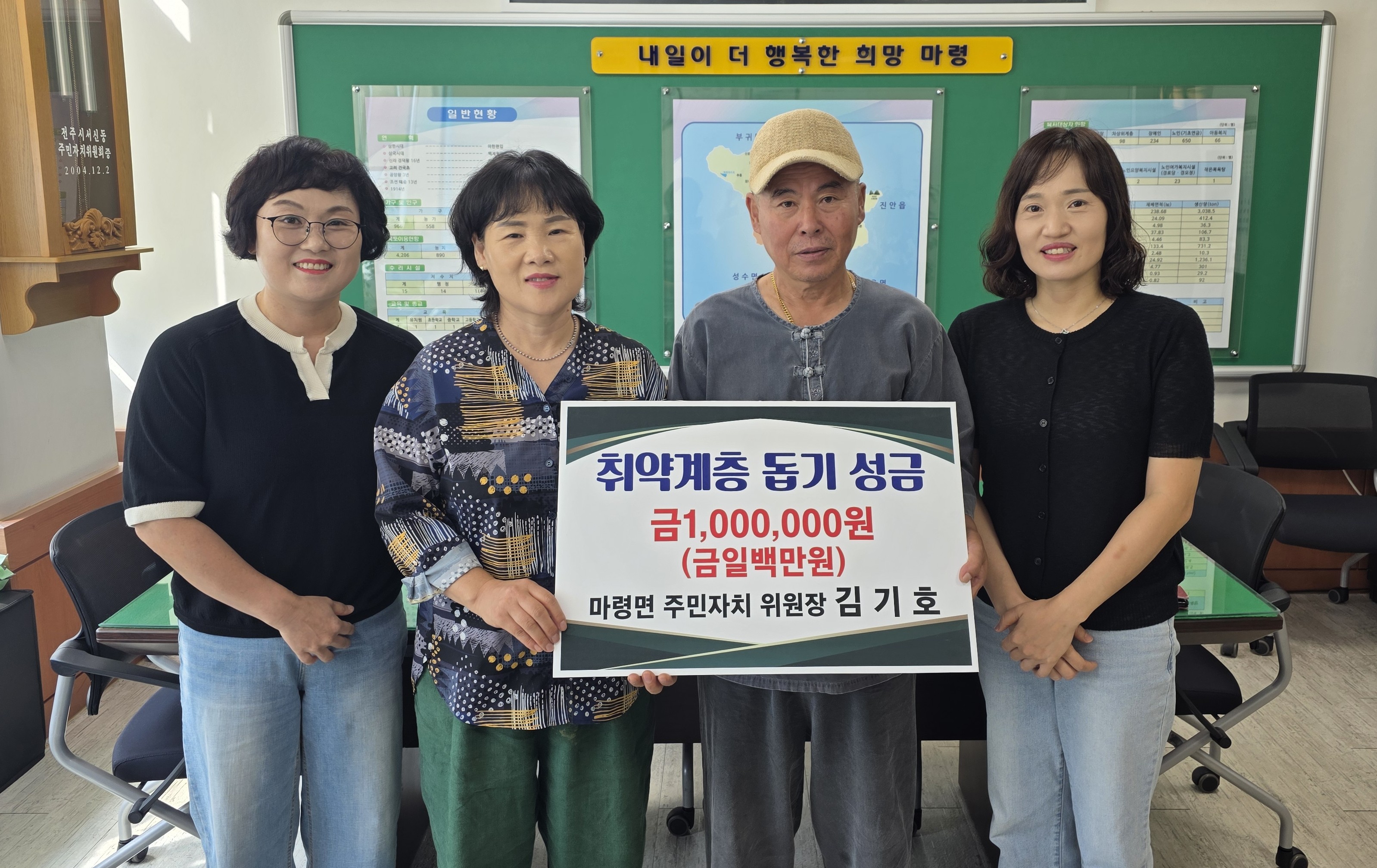 [진안=뉴전북] 진안군 마령면은 19일 김기호 주민자치위원장이 지역 주민의 복지 증진과 따뜻한 나눔 문화 확산을 위해 100만원의 성금을 기부했다고 밝혔다.