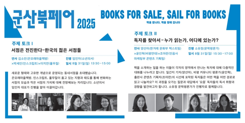 [문화=뉴전북] ‘군산북페어 2025’가 오는 30일과 31일 군산회관에서 다채롭고 흥미로운 북토크 및 전시와 함께 찾아온다.