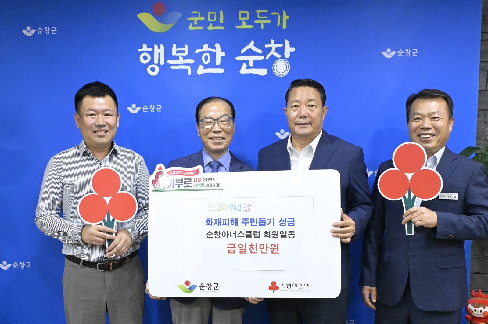 황의옥 순창아너스클럽 회장은 “갑작스러운 화재로 보금자리를 잃은 가정에 깊은 위로를 전한다”면서 “회원들과 함께 작은 힘이나마 보태어 하루빨리 일상으로 돌아가길 바란다”라고 전했다.
