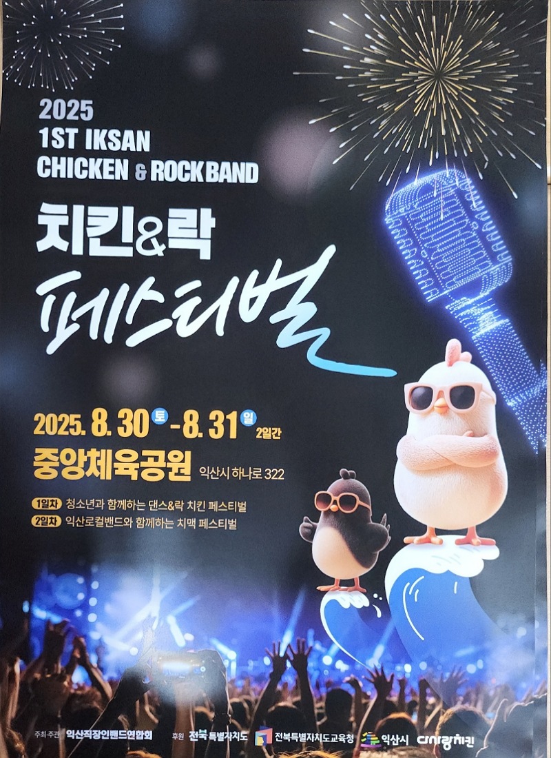 익산시는 오는 30일과 31일 이틀간 중앙체육공원 축구장에서 '제1회 치킨·락밴드 페스티벌'이 열린다고 21일 밝혔다.