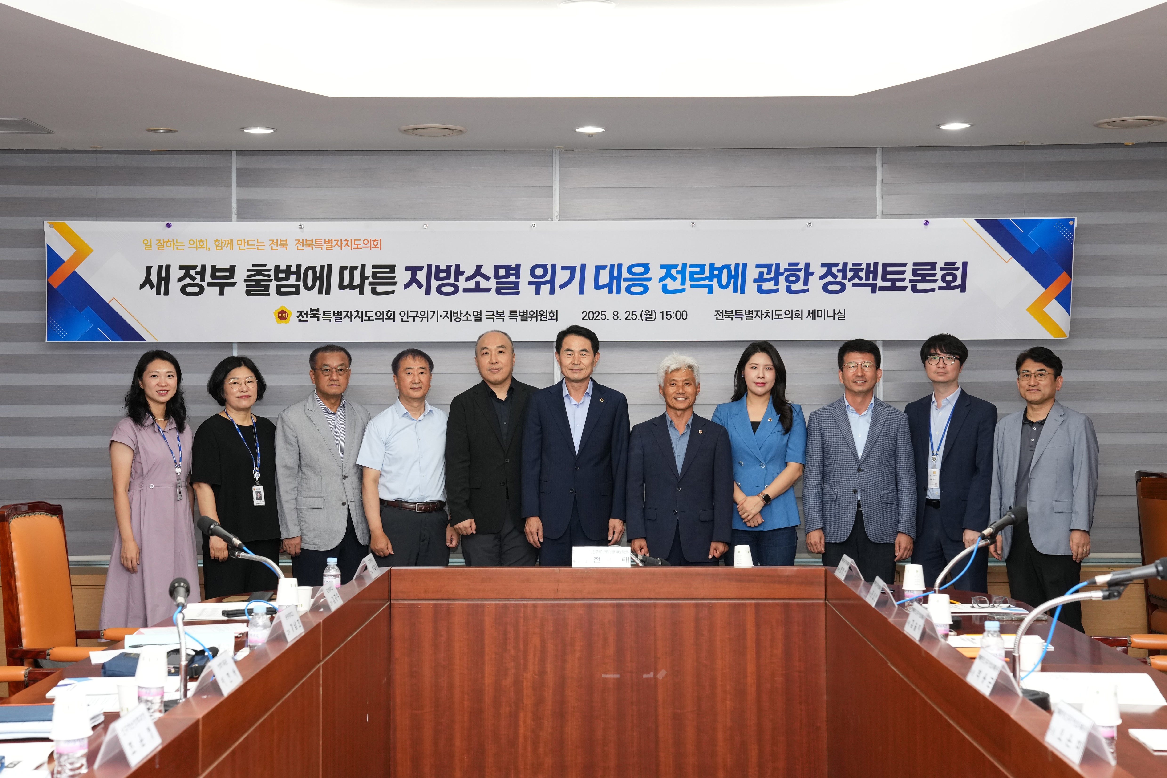 이국용 군산대 교수가 발제하고, 전용태 위원장이 좌장을 맡아 각 분야 교수가 참석해 지방소멸 위기 대응 전략을 주제로 토론했다.