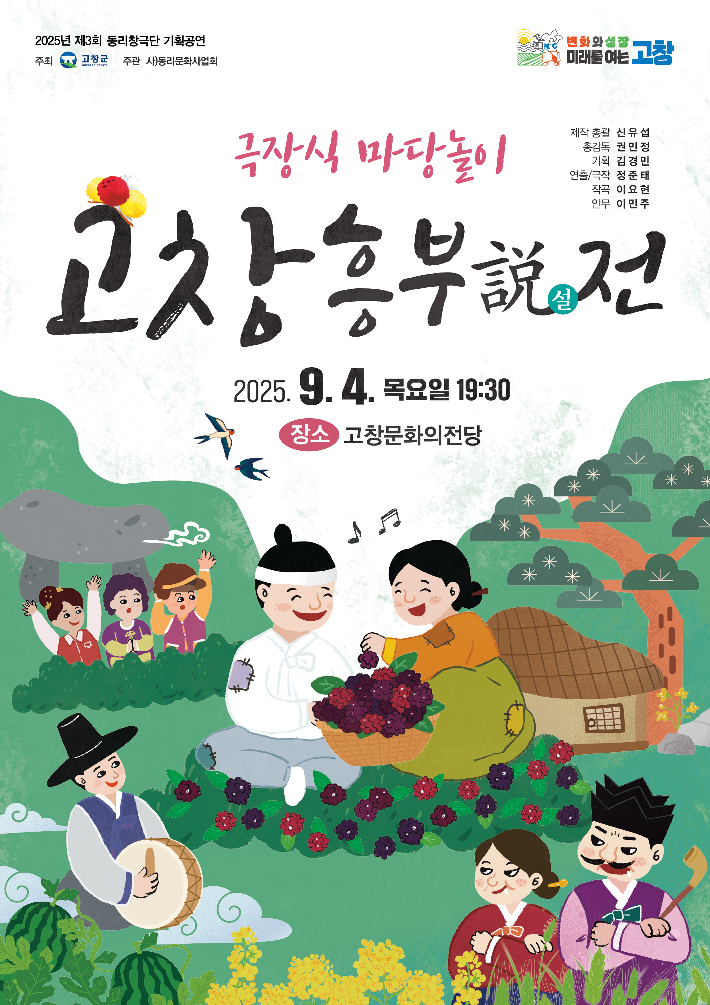 [고창=뉴전북] 고창군이 동리창극단과 함께 극장식 마당놀이 ‘고창 흥부설(說)전’ 공연을 오는 9월4일 오후 7시30분에 고창문화의전당에서 진행한다.