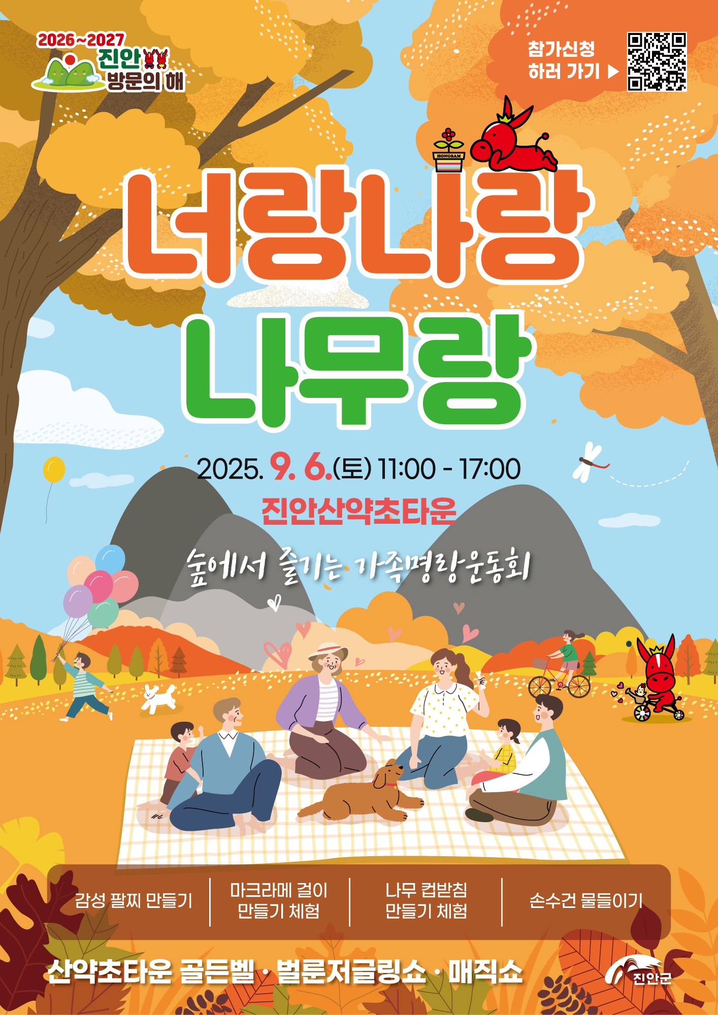진안군 관계자는 “이번 행사는 가을 산림의 아름다움을 배경으로 지역 주민과 관광객이 함께 어울리며 추억을 만드는 소중한 자리”라며, “아이들과 가족이 함께 참여해 유익한 체험과 즐거운 시간을 보내시길 바란다”고 전했다.