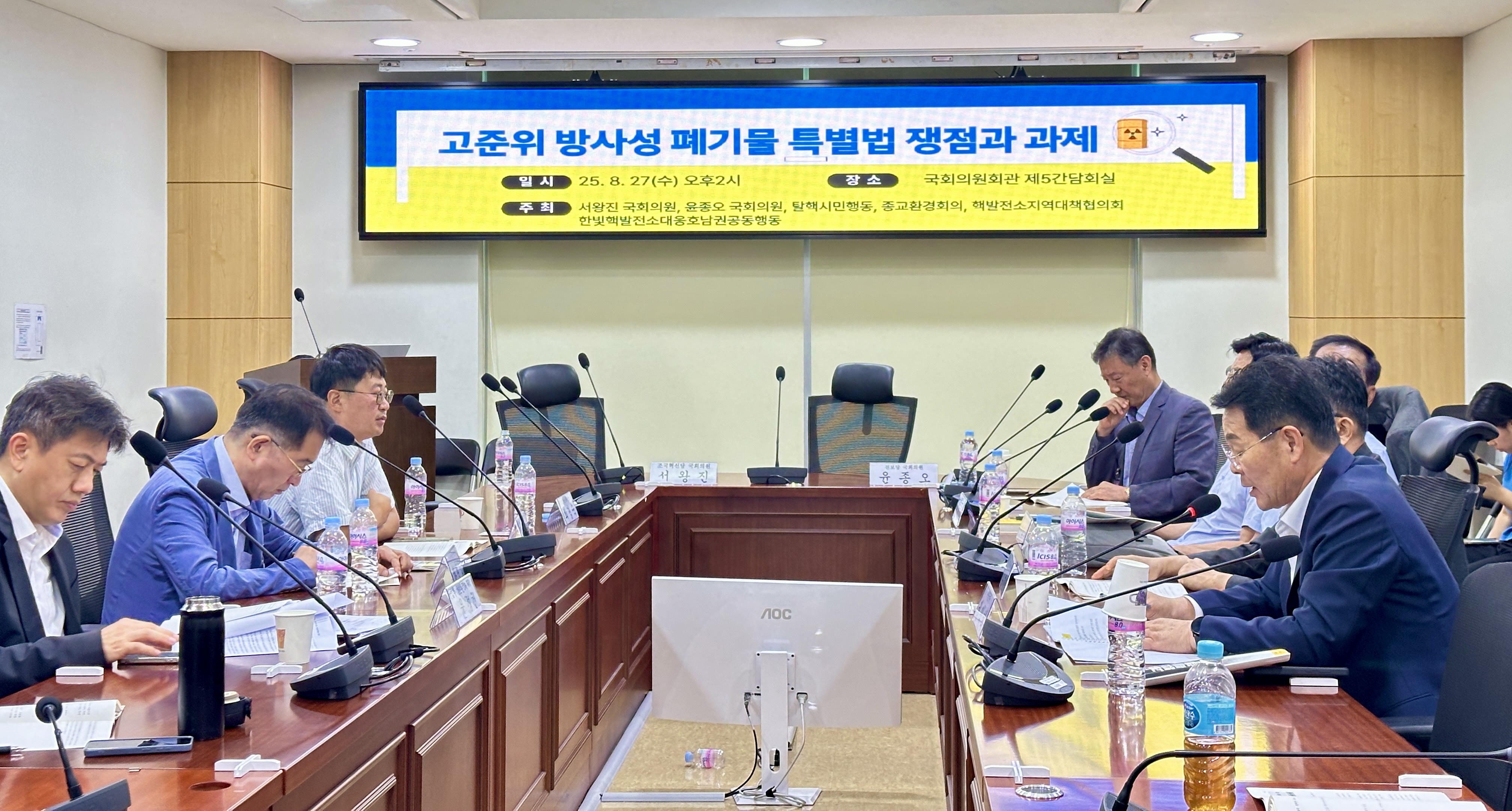 이어 지난 27일 국회에서 열린 고준위방사성폐기물 관리 특별법 시행령 쟁점과 과제 정책토론회에도 참석해 전국원전동맹 대표로 의견을 전달했다.