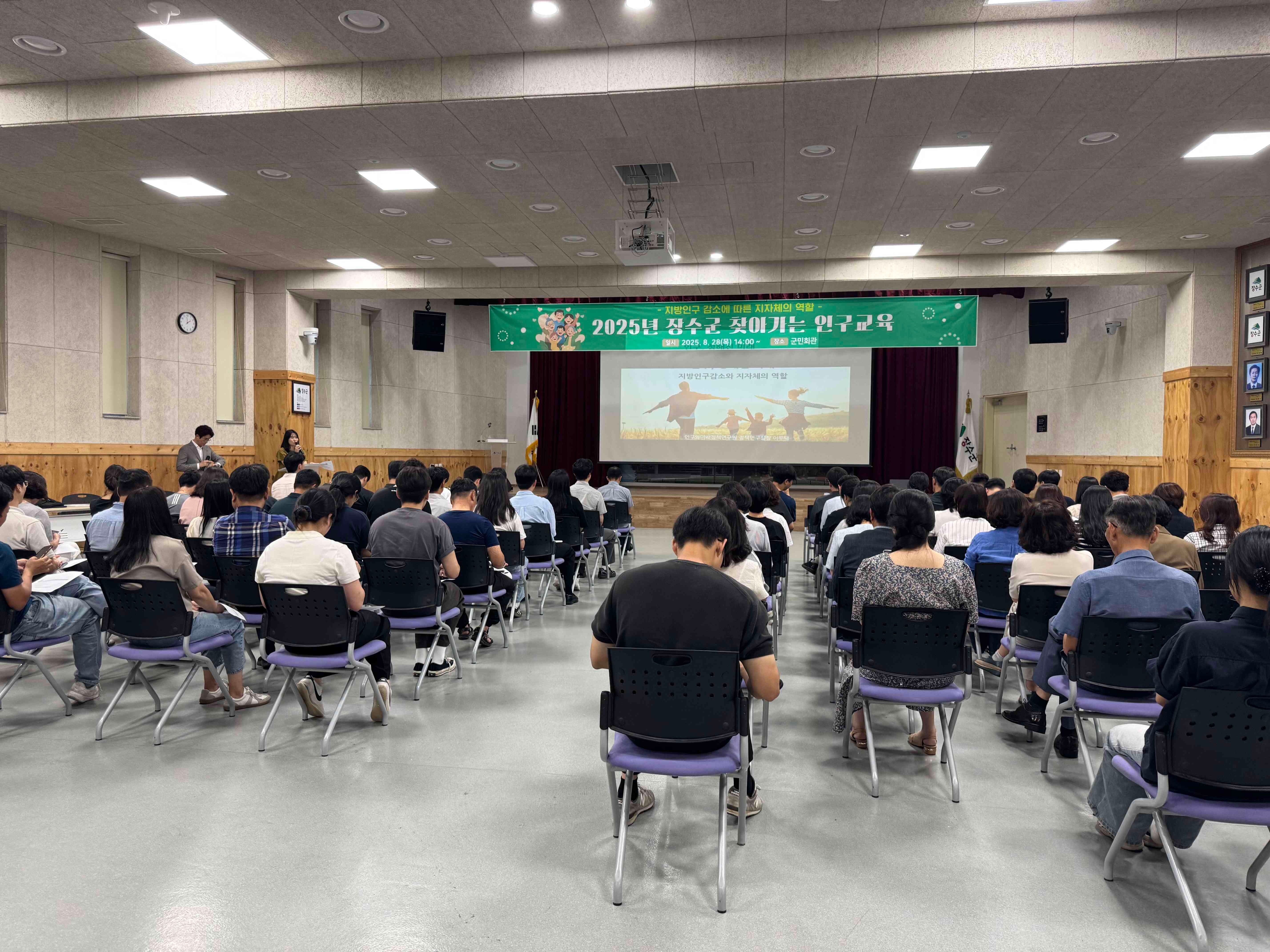 [장수=뉴전북] 장수군은 지역소멸 위기 대응책 마련을 위해 지난 28일 군청 군민회관에서 찾아가는 인구교육을 실시했다고 밝혔다.
