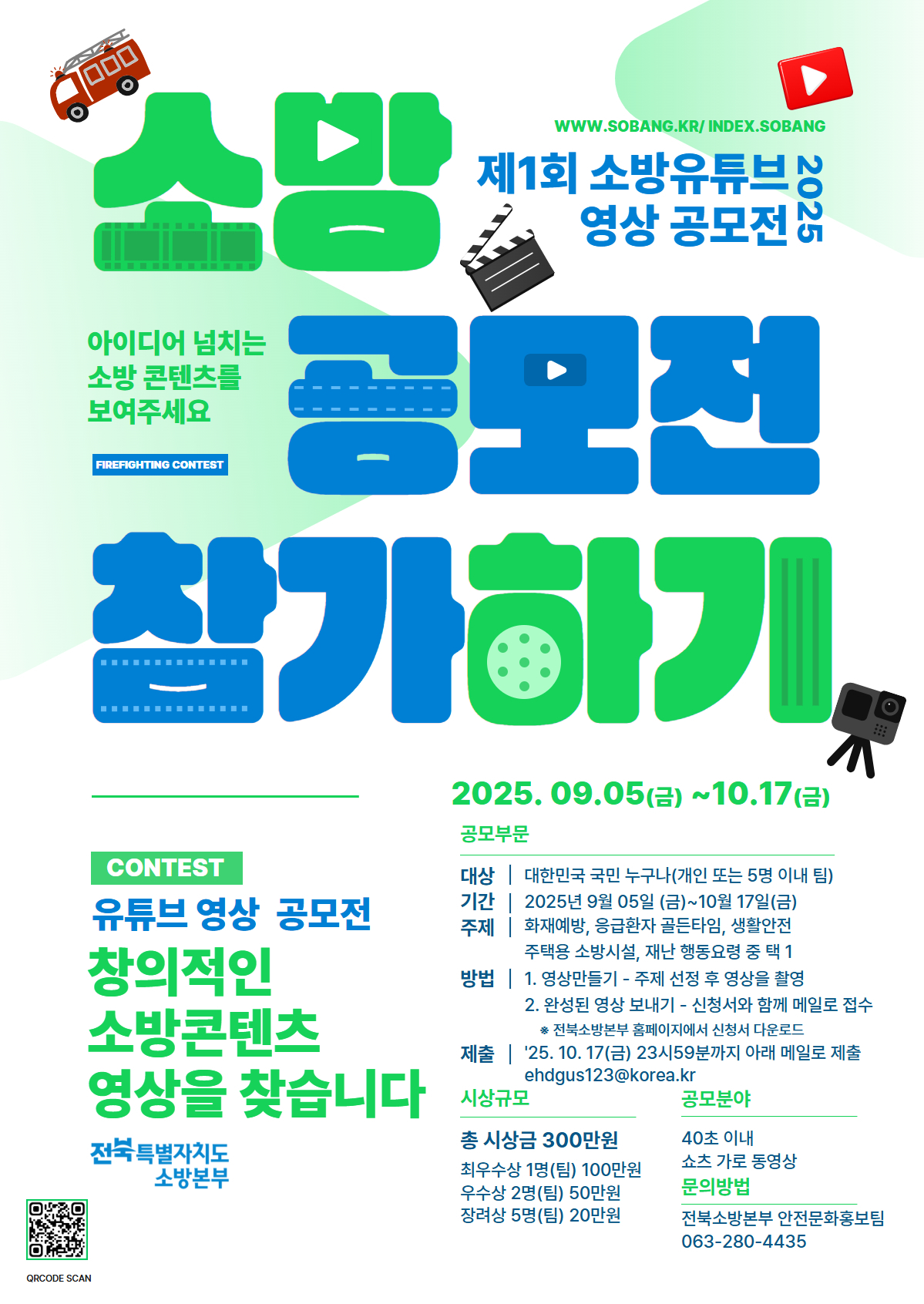 전북소방,‘제1회 도민안전 소방유튜브 공모전’개최... 국민 누구나 “도전”