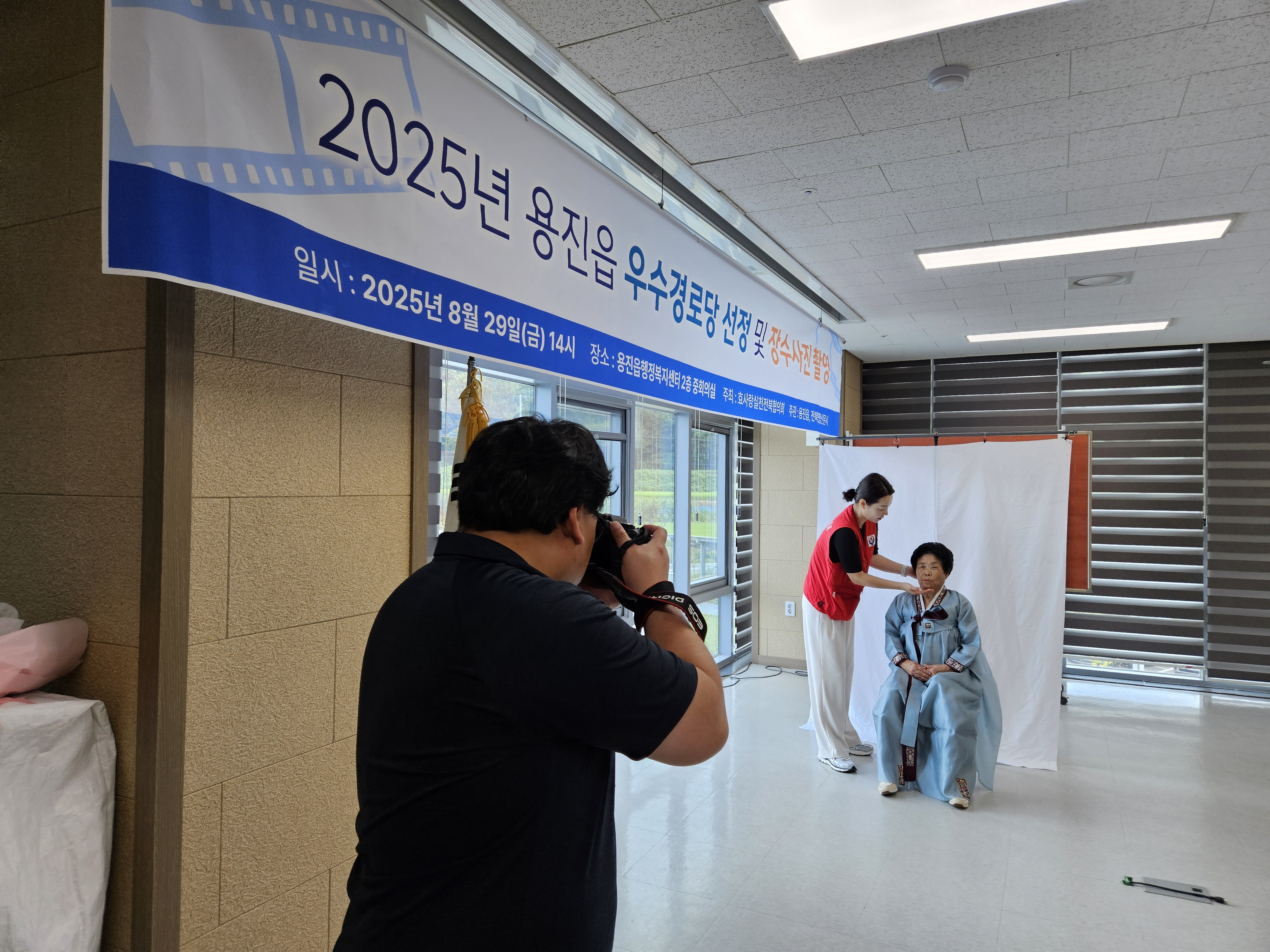 오후에는 용진읍행정복지센터 3층 대회의실에서 어르신 35명을 대상으로 장수사진 촬영 봉사가 진행됐다. 전문 사진작가의 정성 어린 촬영으로 어르신들의 행복한 미소와 삶의 흔적이 담긴 사진이 완성돼 큰 호응을 얻었다.