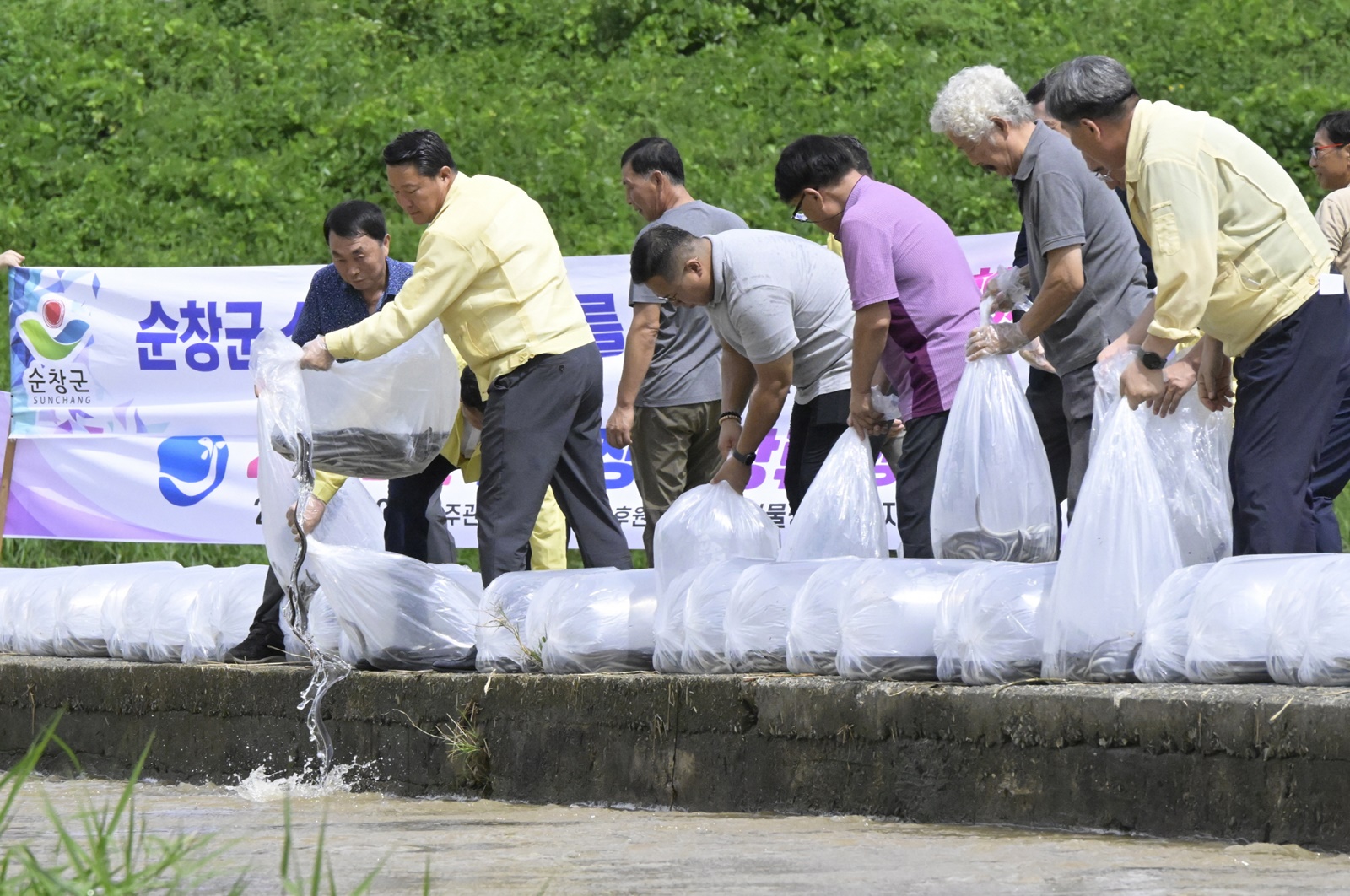 [순창=뉴전북] 전북 순창군 섬진강 일대에서 지역 생태복원을 위한 뱀장어 방류행사가 열렸다.