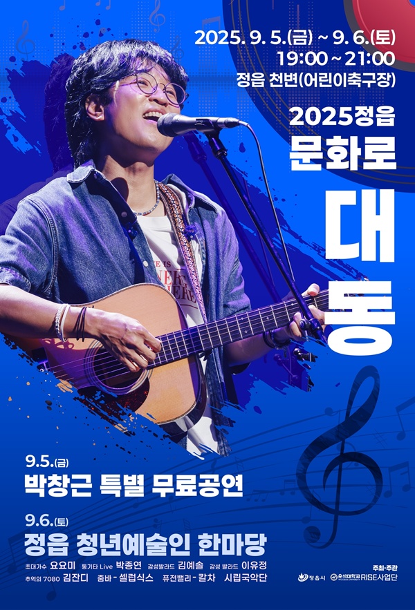 정읍시, ‘2025 문화로 대동’ 5~6일 개최…박창근 특별 무료공연
