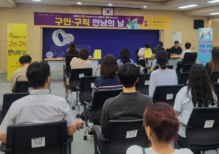 전주시는 4일 시청 4층 회의실에서 구직난을 겪고 있는 청·장년층을 돕고, 인재를 찾지 못하는 중소업체의 인력난을 해소하기 위한 ‘2025년 제3회 구인·구직 만남의 날’ 행사를 개최했다.