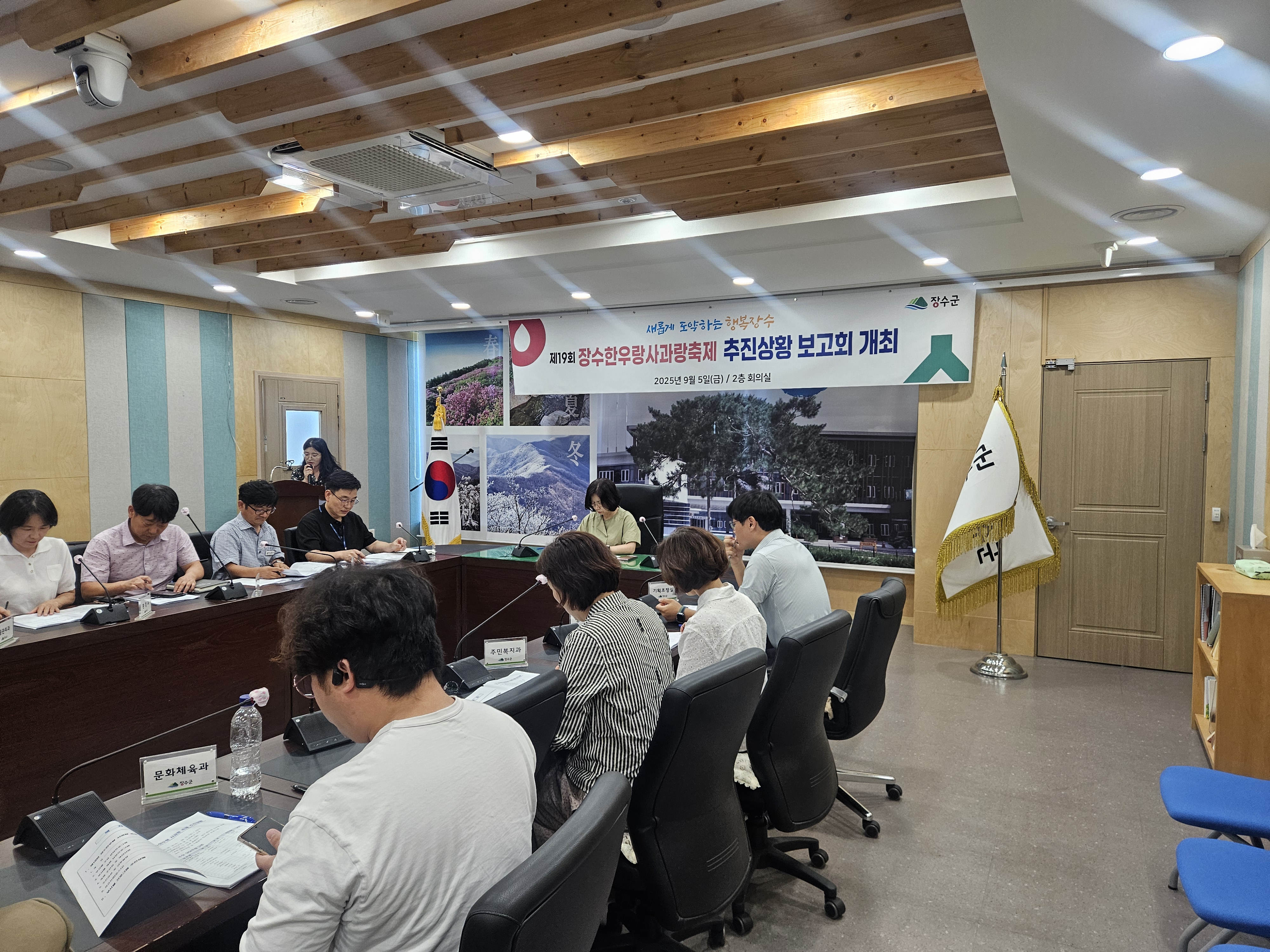[장수=뉴전북] 장수군은 ‘제19회 장수한우랑사과랑축제’의 성공적 개최를 위해 군청 회의실에서 이정우 부군수 주재로 추진상황보고회를 개최했다고 8일 밝혔다.