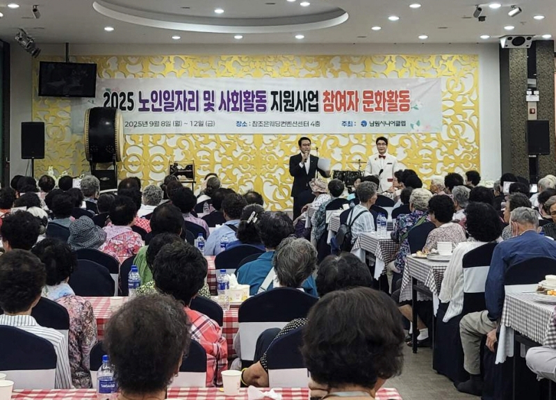 [문화=뉴전북] 남원시니어클럽(관장 김현성)은 지난 8일 남원 참조은웨딩컨벤션에서 '행복한 동행' 문화활동 행사를 개최했다.