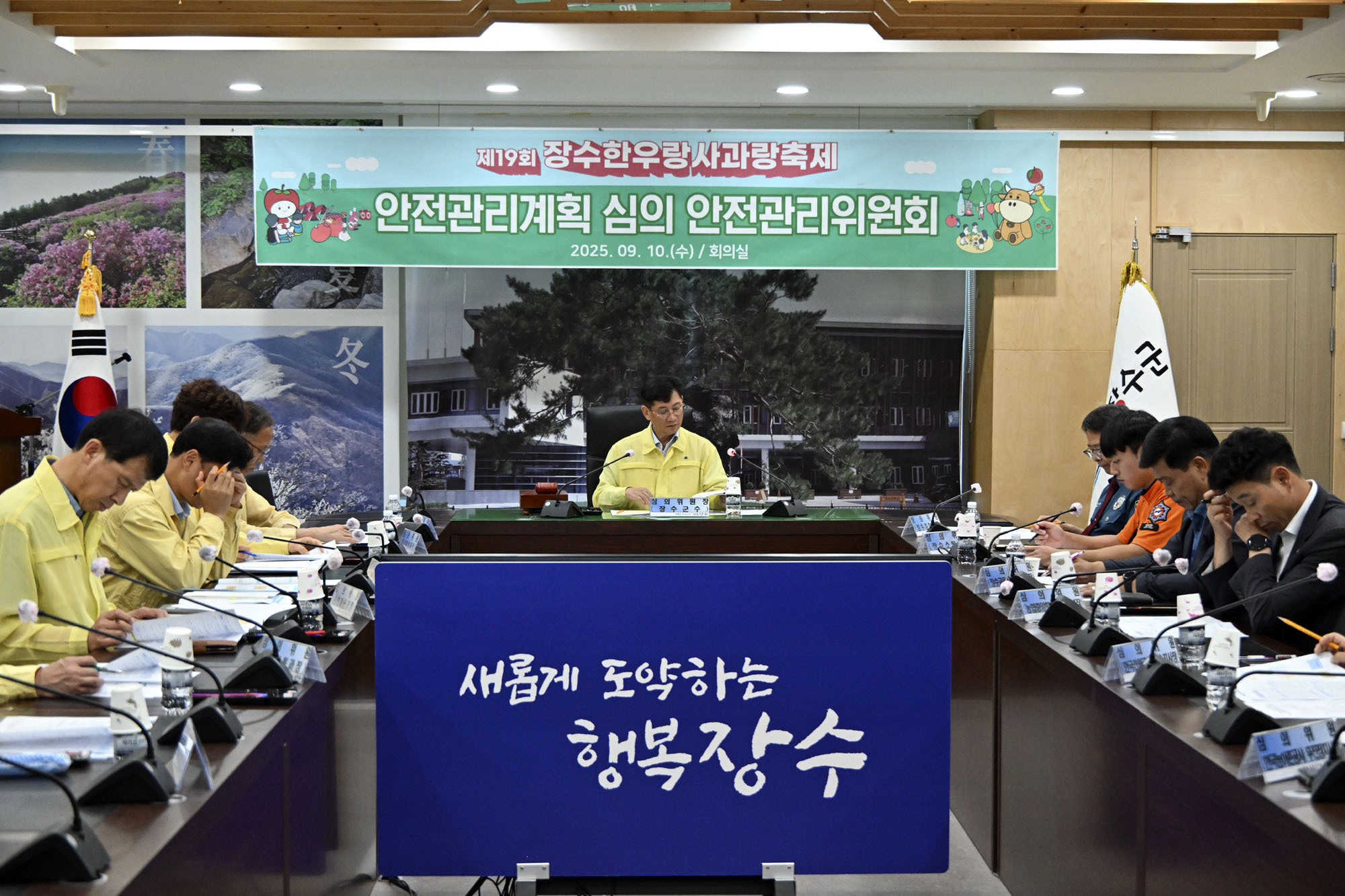이번 회의의 주요 안건은 ‘제19회 장수한우랑사과랑축제 안전관리계획’으로 인파 운집, 국지성 호우, 폭염 등 발생 가능한 다양한 위험요소에 대비한 행사 운영 및 세부 프로그램의 전반적인 안전관리 대책을 집중적으로 검토했다.