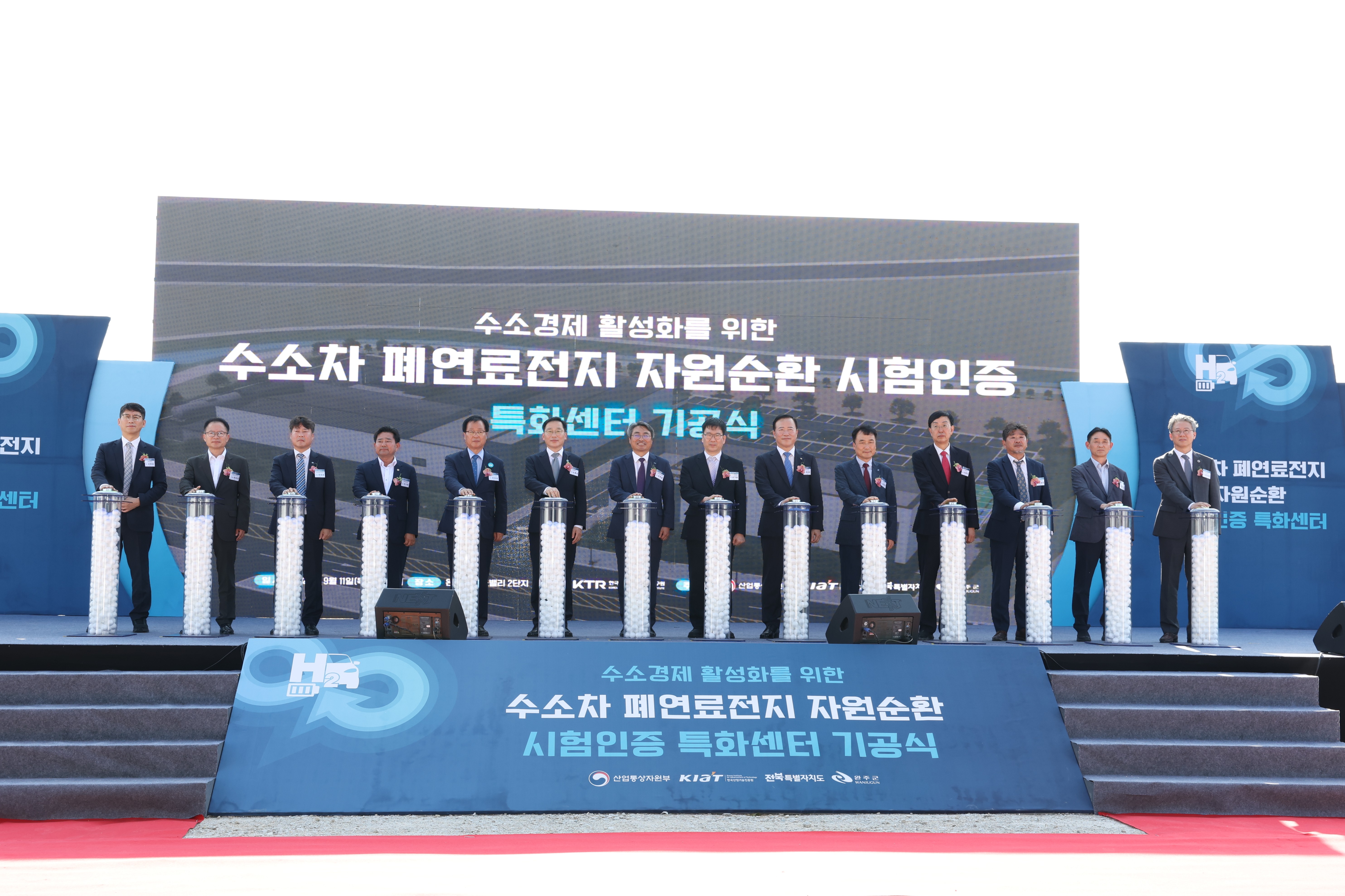 이날 행사에는 유희태 완주군수, 노홍석 전북도 행정부지사, 윤수봉 전북도의회 의원, 권현철 산업통상자원부 수소경제정책관 과장을 비롯한 한국가스안전공사, 한국전기안전공사, 현대차 전주공장, 지역대학 관계자 등 100여 명이 참석해 센터 건립의 첫 출발을 축하했다.