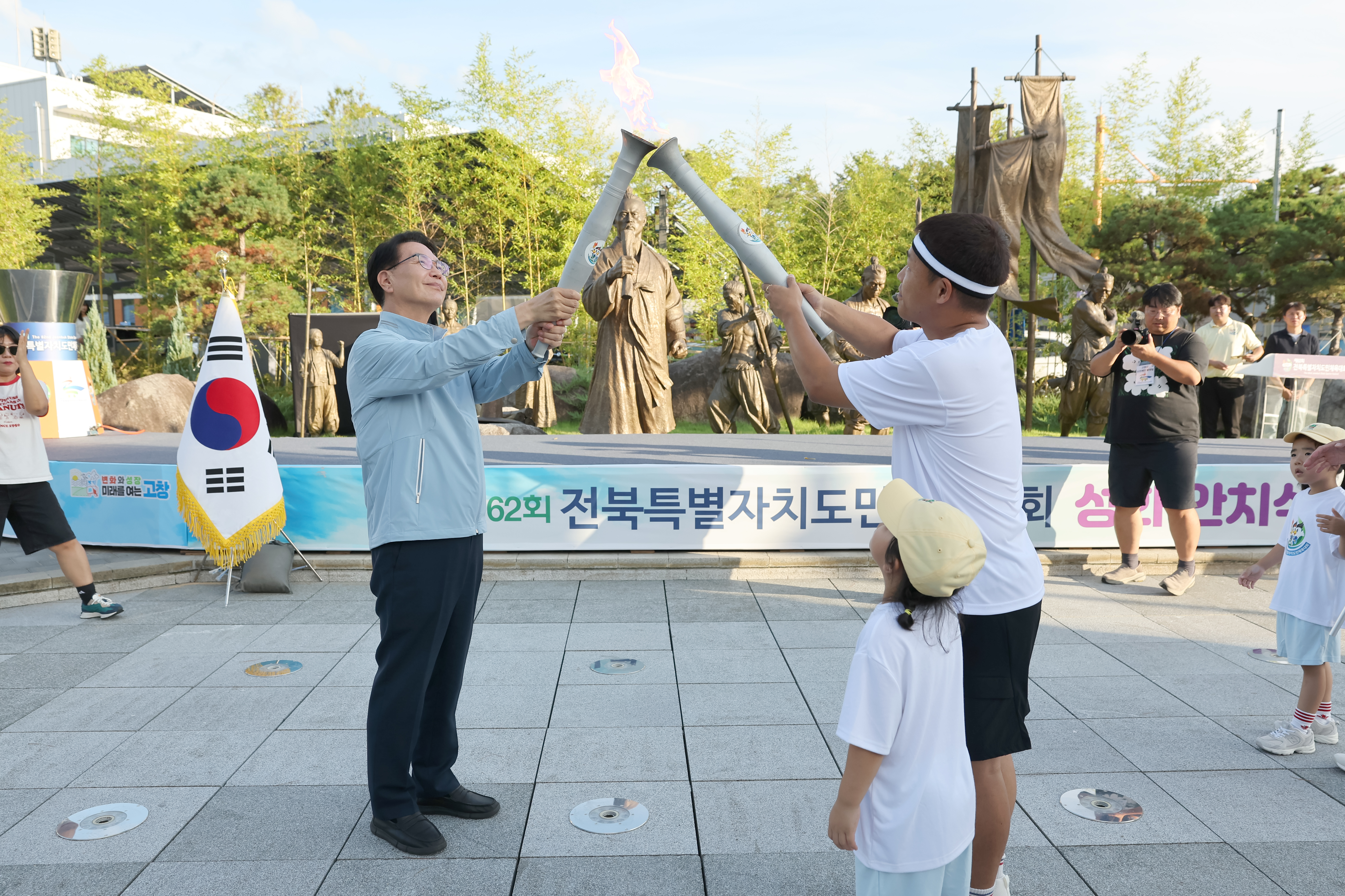 이번 도민체전 성화는 고창군의 진산(鎭山) 방장산에서 채화돼 드론으로 고창읍성까지 이송되며 화제를 모았다. 첫 주자는 결혼 8개월차 신혼부부가 맡았고, 이어 14개 읍·면을 돌며 각계각층의 군민들이 참여하며 화합과 체전성공의 열망을 담았다.