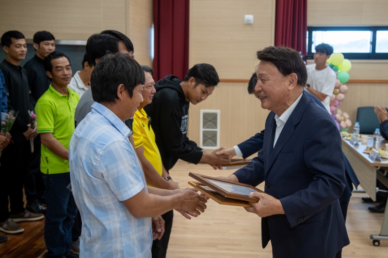 이번 행사는 단 한 명의 이탈자 없이 시의 첫 공공형 외국인 계절 근로 사업이 성공적으로 마무리된 것과 건강한 귀국을 기원하기 위해 마련됐다.