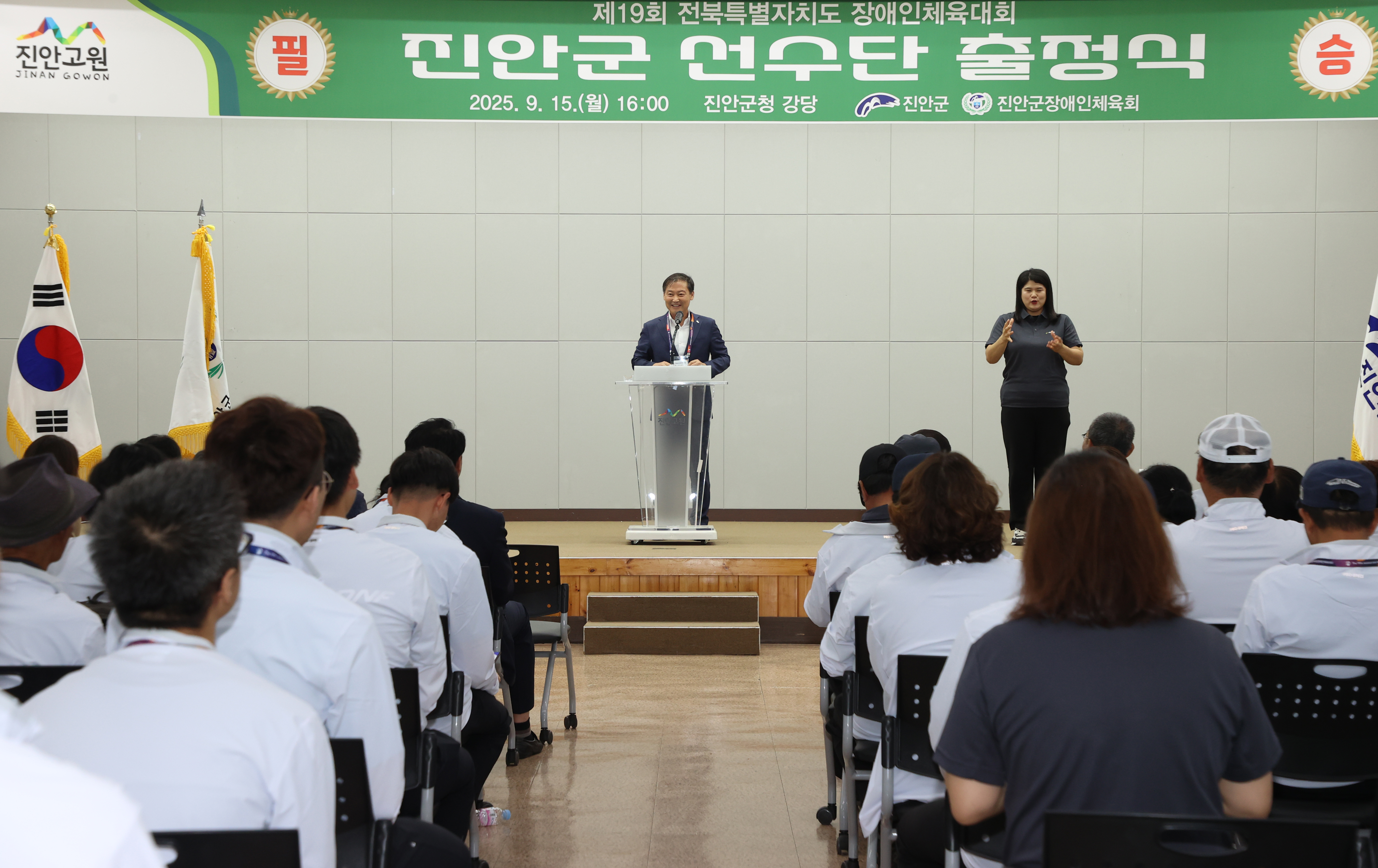 이 날 출정식에는 전춘성 진안군수(진안군장애인체육회장), 동창옥 진안군의회의장, 전용태 전북특별자치도의원, 정봉운 진안군체육회장을 비롯해 종목별 선수와 임원 등 150여명이 참석했다.