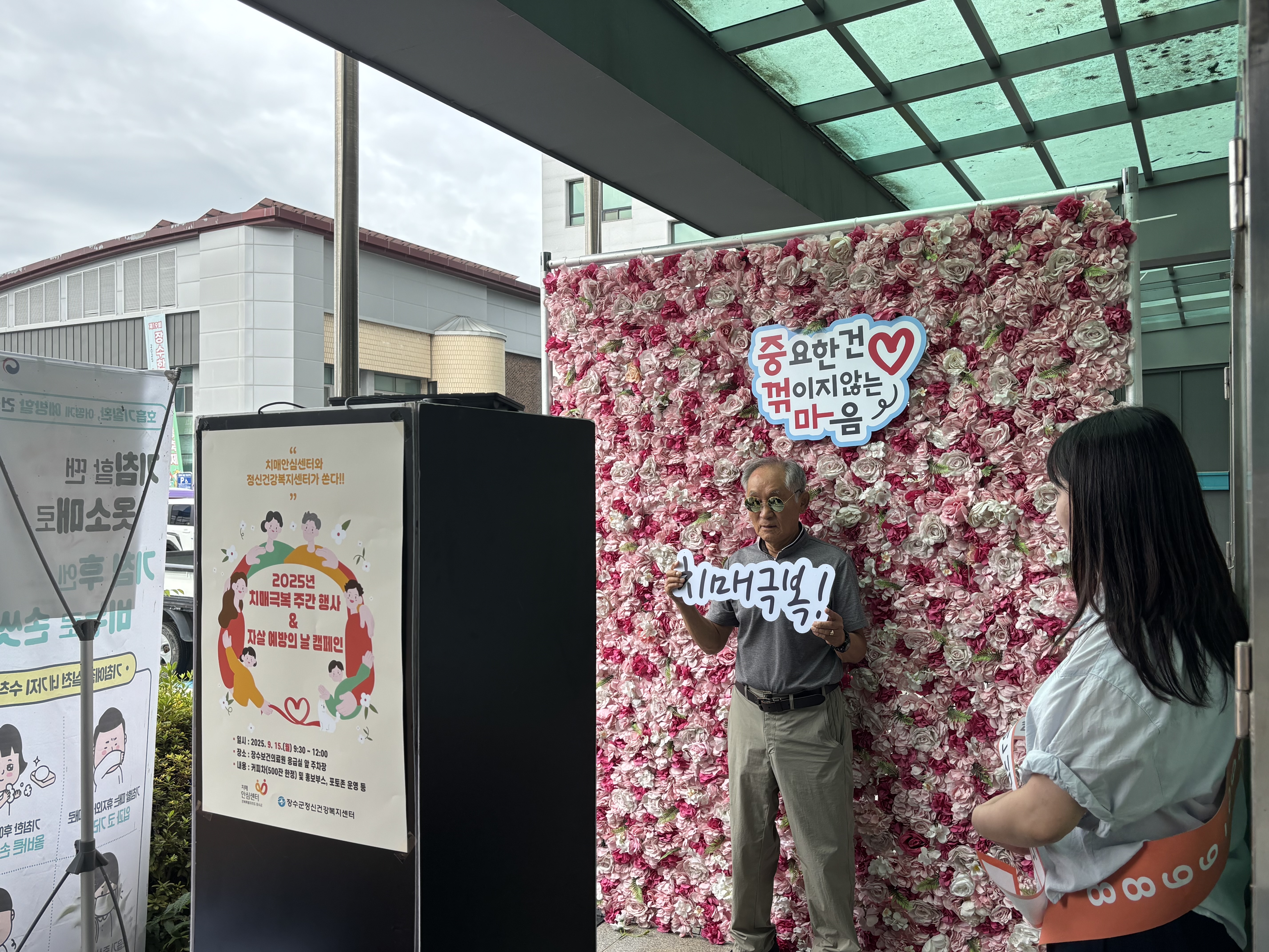 포토부스에서는 ‘치매극복’, ‘생명존중’이라는 메시지가 담긴 문구를 활용해 주민들의 참여를 유도하며 공감대를 형성했다.