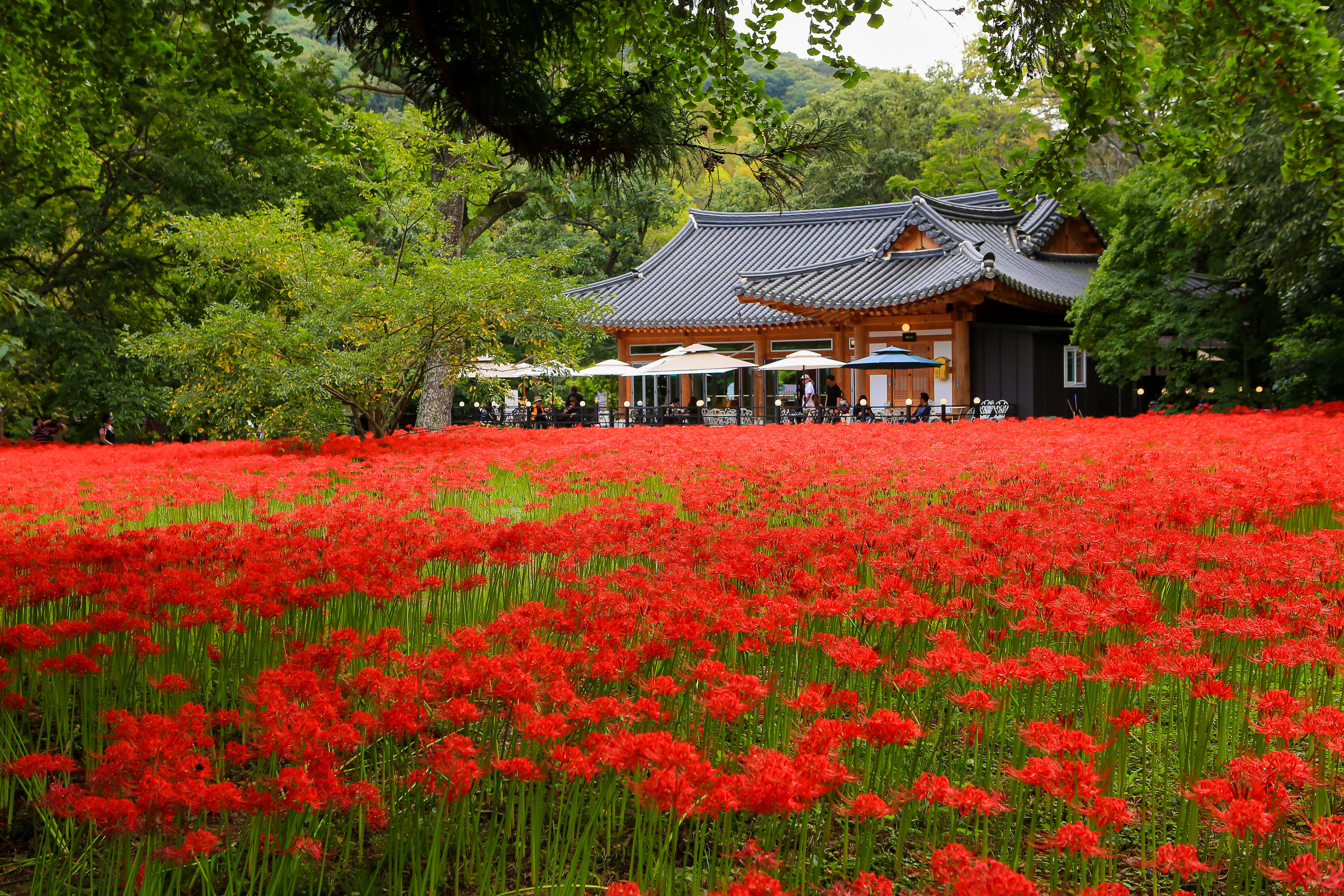 특히 꽃무릇은 꽃과 잎이 서로 다른 시기에 피는 독특한 식물로 “만날 수 없는 인연”을 상징한다. 붉게 물든 꽃밭 속을 거닐면 누구나 로맨틱한 분위기와 함께 가을만의 감성을 느낄 수 있다.