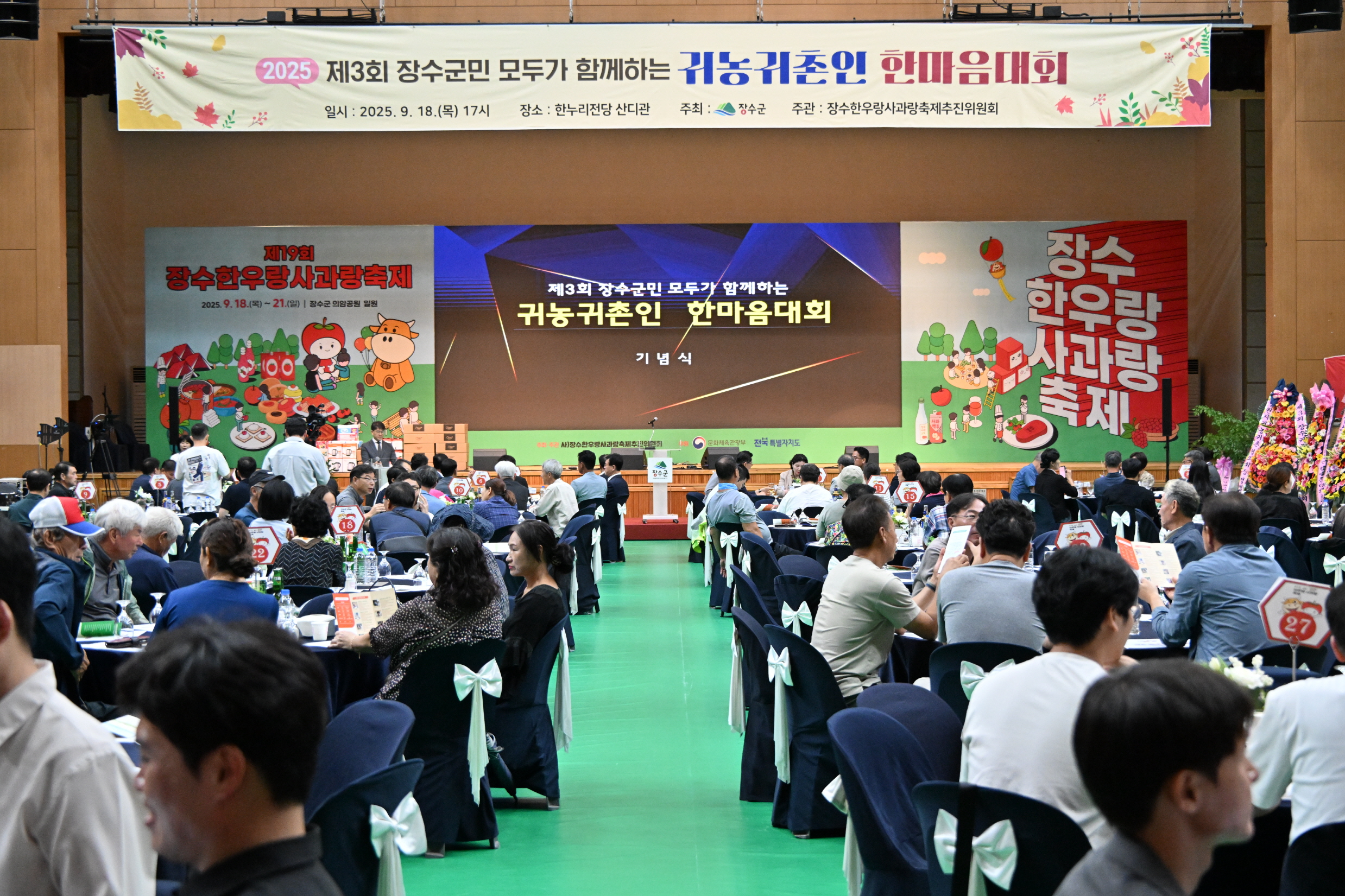이번 행사는 제19회 장수한우랑사과랑축제 첫날에 맞춰 열렸으며, 귀농귀촌인을 비롯한 모든 군민이 함께 어울려 장수에서 살아가는 의미를 공유하고 소통하는 화합의 장으로 마련됐다.